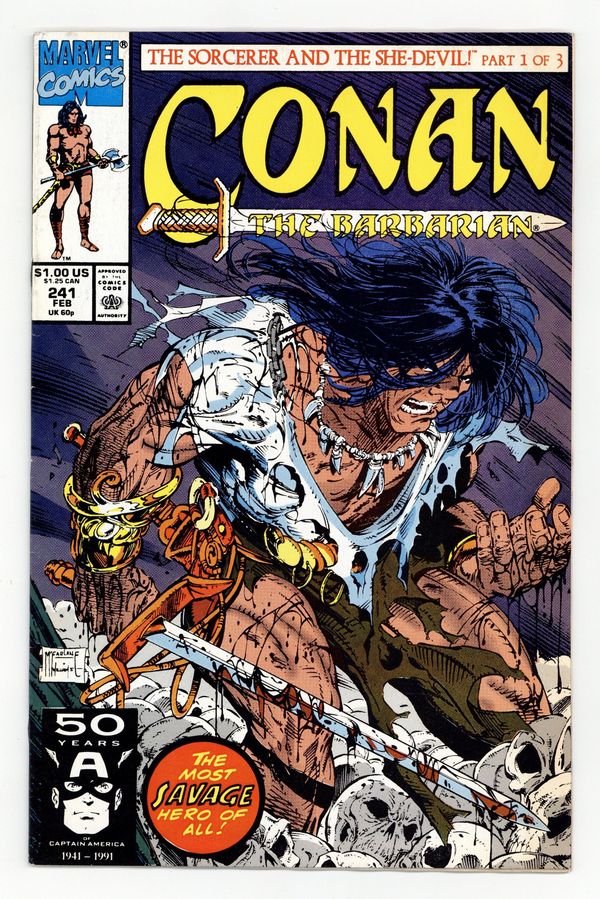 Tags: Marvel Legacy Numbering: Conan (part 241), Conan$40.00Direct Edition. Cover pencils by Todd McFarlane, inks by Scott Williams. All Roads Lead To Zamora, script by Roy Thomas, pencils by Gary Hartle, inks by Mike DeCarlo; Red Sonja is getting married, and Conan is anything but the best man when he suspects sorcery, and not love, is her motivation. 36 pgs. Cover price $1.00. Cover price $1.00.