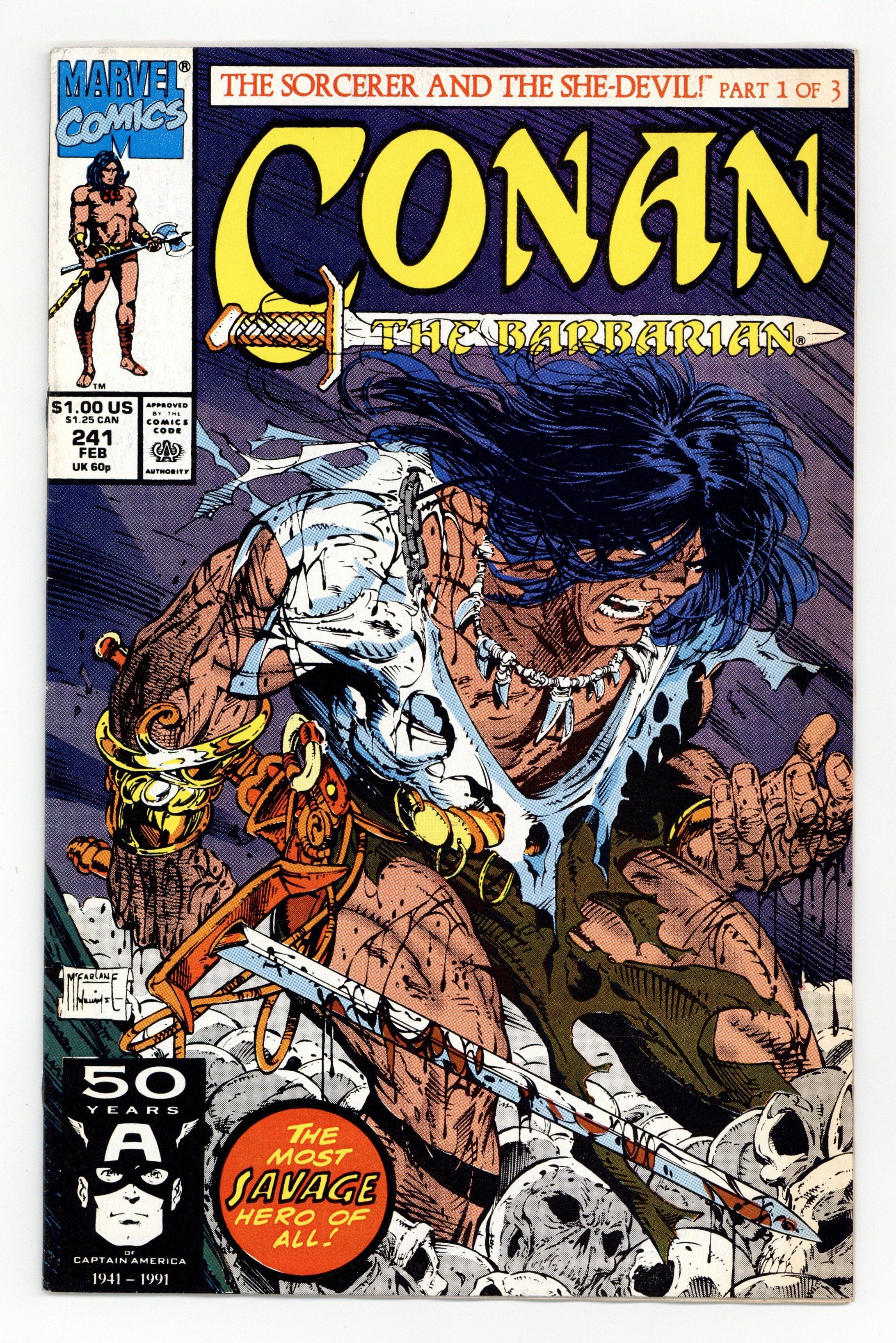 Tags: Marvel Legacy Numbering: Conan (part 241), Conan$60.00Direct Edition. Cover pencils by Todd McFarlane, inks by Scott Williams. All Roads Lead To Zamora, script by Roy Thomas, pencils by Gary Hartle, inks by Mike DeCarlo; Red Sonja is getting married, and Conan is anything but the best man when he suspects sorcery, and not love, is her motivation. 36 pgs. Cover price $1.00. Cover price $1.00.