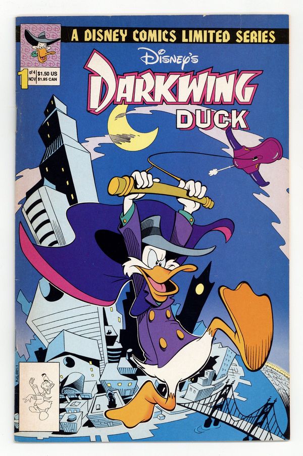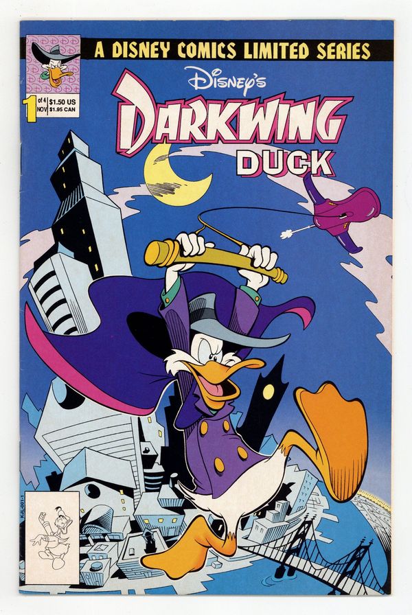 Darkwing Duck, a.k.a. the Terror That Flaps In The Night, tries to foil Taurus Bulba's plot to steal the Ram Rod in Brawl in the Family Part One: "Darkly Dawns the Duck." Continued next issue. Script & pencils by John Blair Moore. Inks by George Wildman. Plus: 3-page interview with Jim Cummings, the voice of Darkwing Duck in the animated series. Cover by John Blair Moore & Gary Martin. Cover price $1.50.
