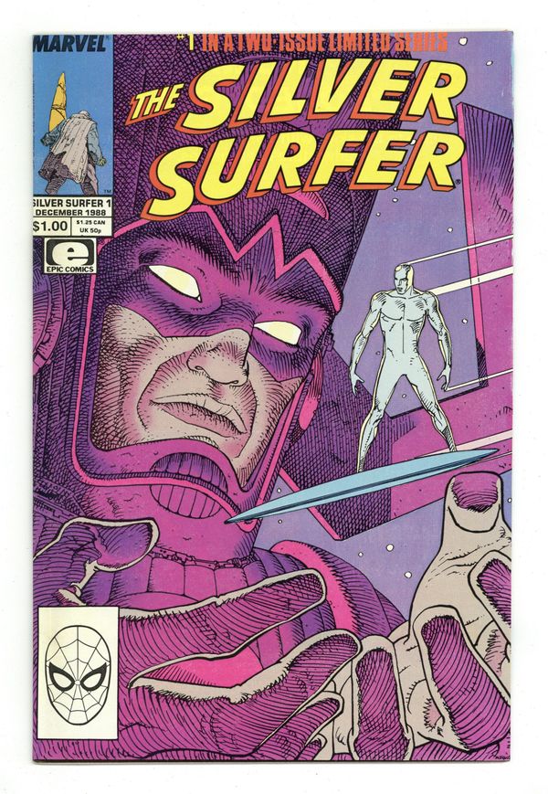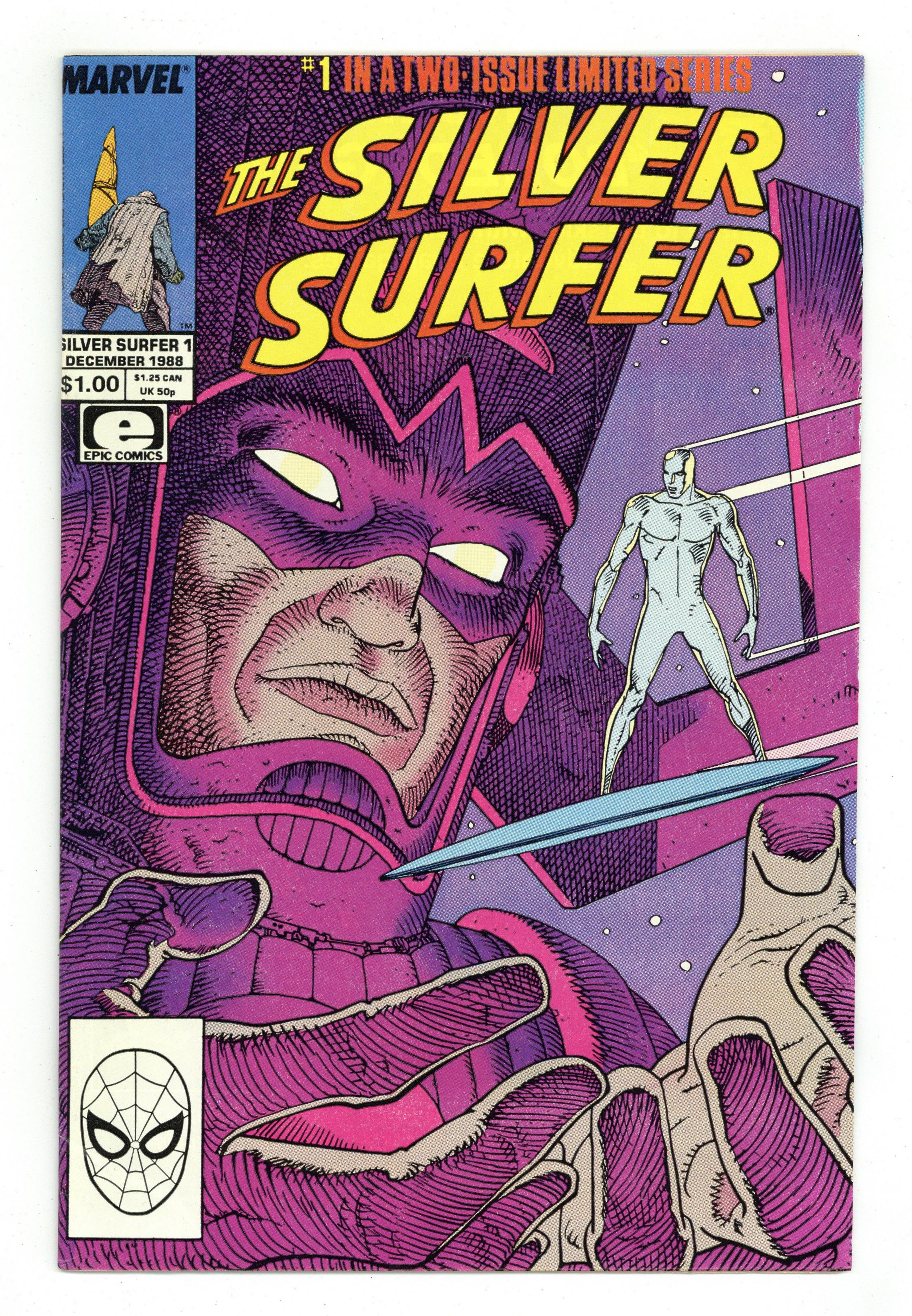 $8.00Direct Edition. Cover by Moebius. Parable, script by Stan Lee, art by Moebius; The Silver Surfer is a street person on Earth when Galactus arrives and proclaims himself God and tells everyone to have a good time. 36 pgs., full color. $1.00. Cover price $1.00.