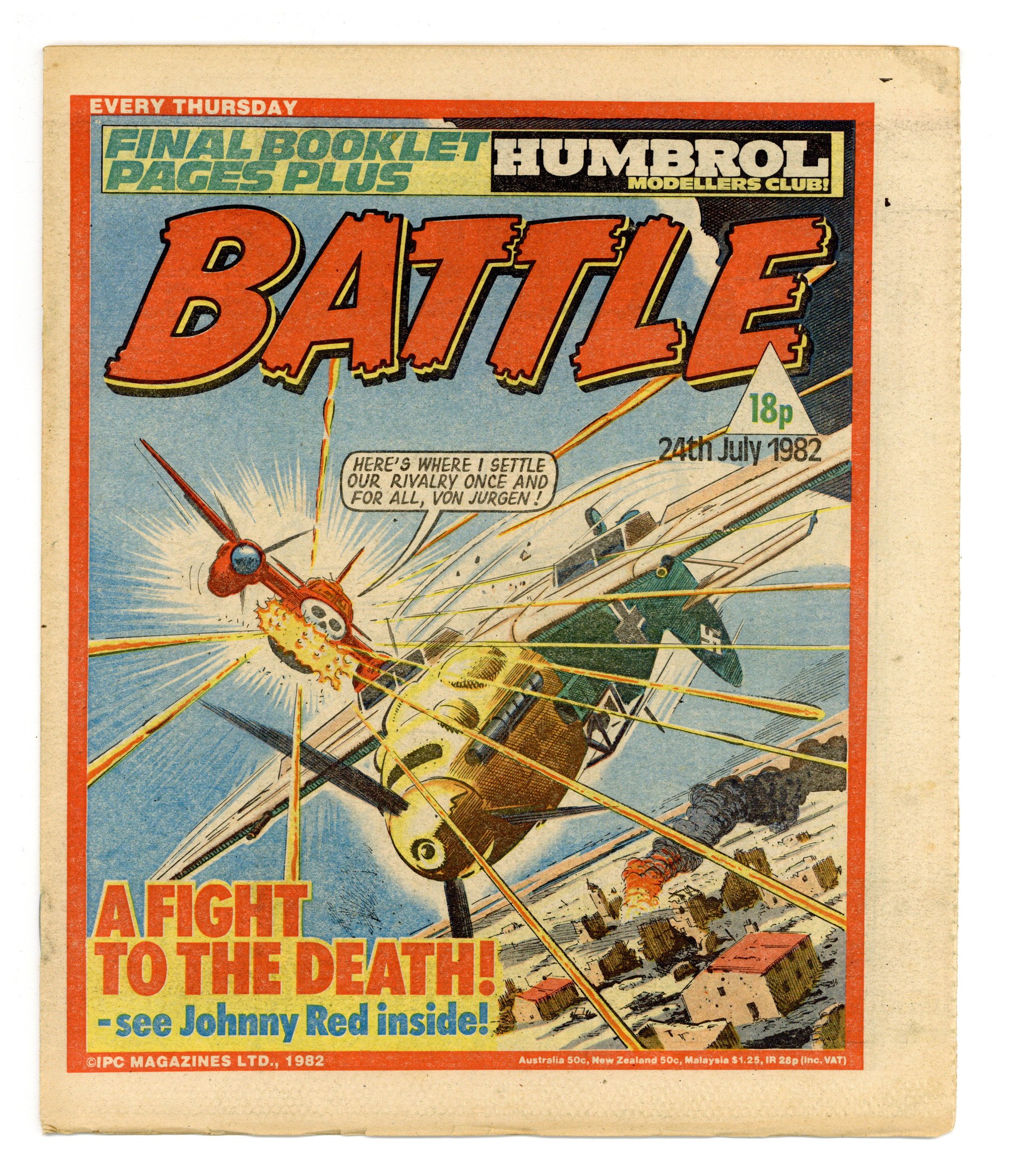 July 24, 1982. Published by IPC Magazines, Ltd. in the U.K. "Tough action war stories every week!" Combined with Valiant (also an IPC publication). 9 x 11 in.; black and white (color centerspread); 32 pages; 18p cover price.