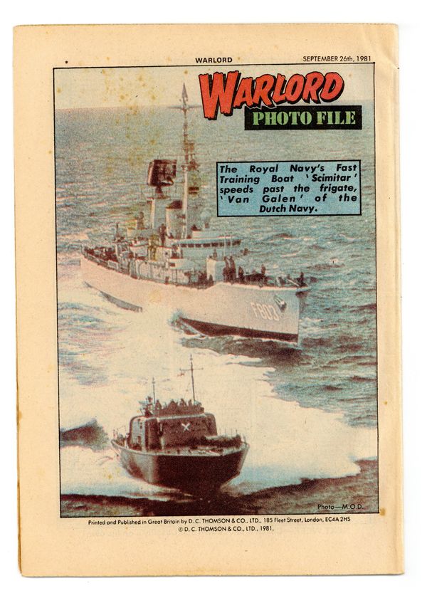 Published Sep 1981 by D.C. Thomson & Co..$9.60September 26, 1981. War stories. Newsprint (Saddle-Stitched), 8 1/2-in. x 11 1/2-in., 32 pages, B&W.