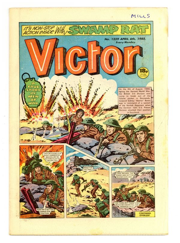 Published Apr 1985 by D.C. Thomson & Co..$9.00April 6, 1985. Published by D.C. Thompson and Co. Ltd. in Great Britain. Action/adventure stories feature the Quest of the Last Six Hundred, Johnny Gurkha, the Punch Pirate, Morgyn the Mighty, Legion of the Lost, Duke Farlow, Taneebo the Thunderbolt, and more. 8.5 x 11.75; black and white; 32 pages; 18p cover price.