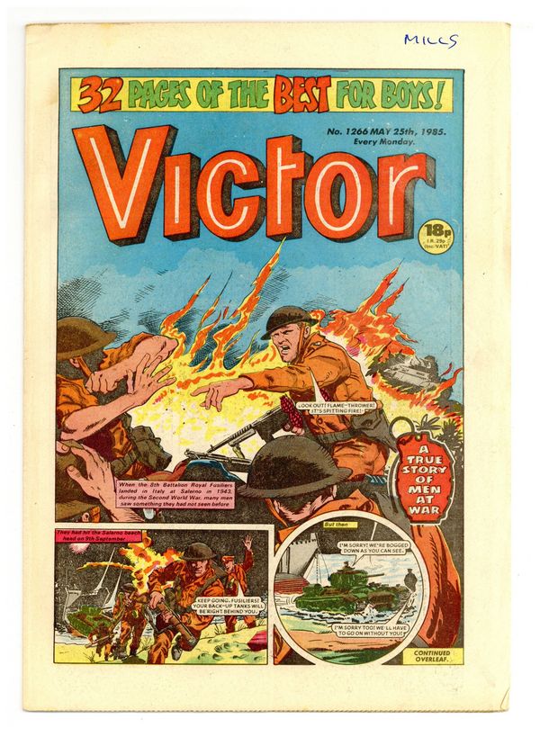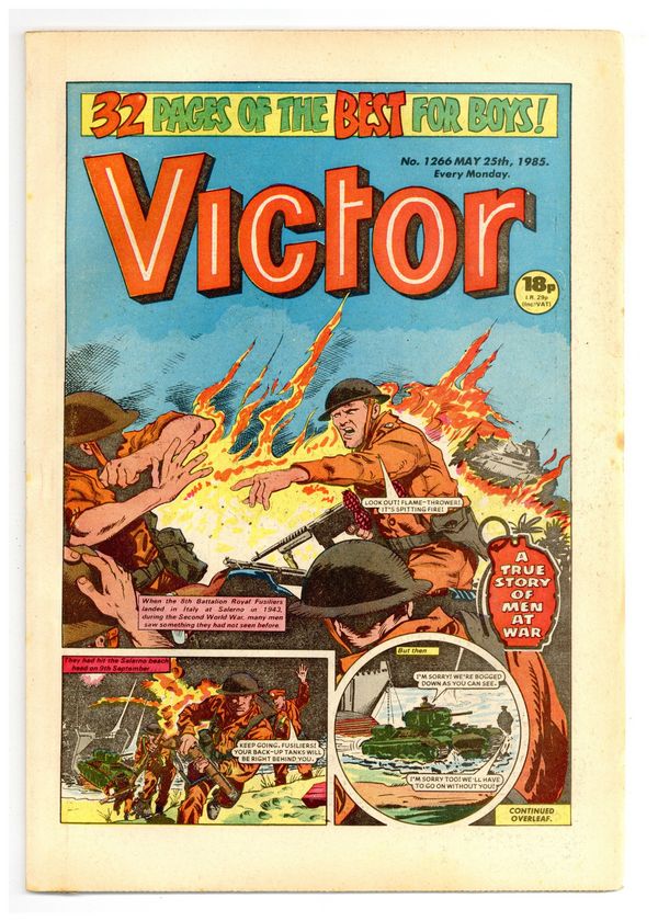Published May 1985 by D.C. Thomson & Co..$7.20May 25, 1985. Published by D.C. Thompson and Co. Ltd. in Great Britain. Action/adventure stories feature the Quest of the Last Six Hundred, Johnny Gurkha, the Punch Pirate, Morgyn the Mighty, Legion of the Lost, Duke Farlow, Taneebo the Thunderbolt, and more. 8.5 x 11.75; black and white; 32 pages; 18p cover price.