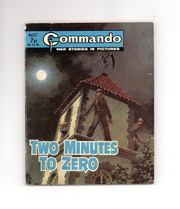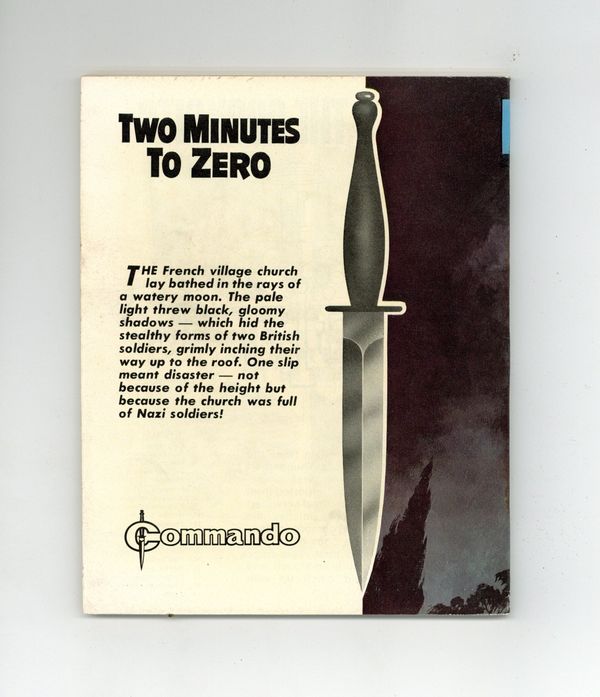 Published May 1975 by D. C. Thomson.$4.40Weekly British War comics digest. "Two Minutes to Zero" Softcover, 5 1/2-in. x 6 1/2-in., 68 pages, B/W.