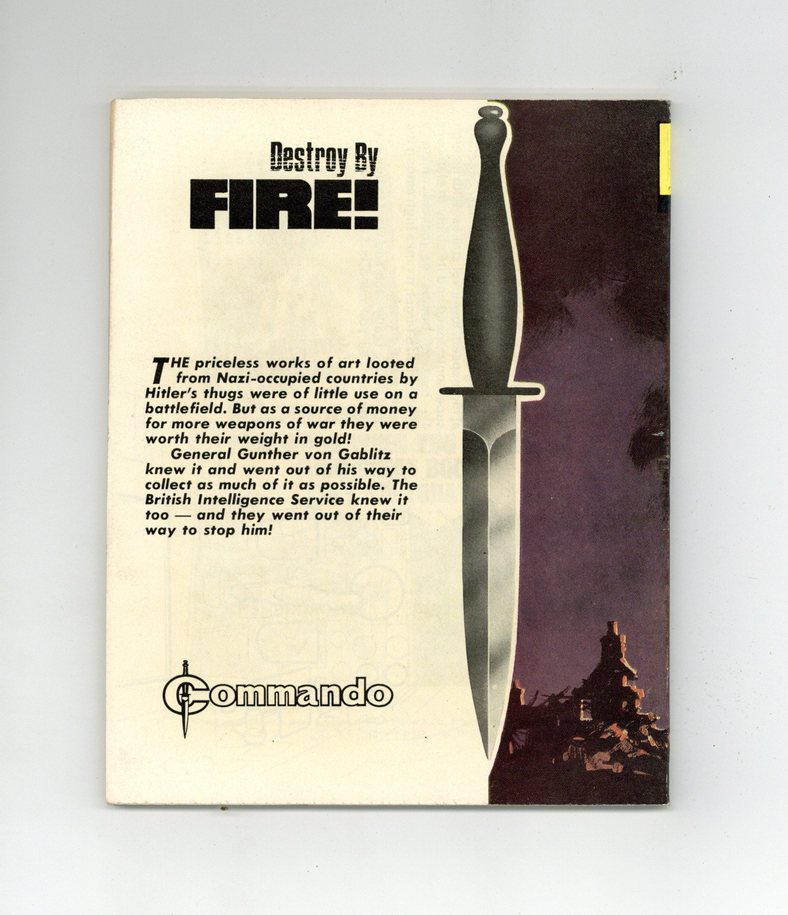 Weekly British War comics digest. "Destroy by Fire!" Softcover, 5 1/2-in. x 6 1/2-in., 68 pages, B/W.