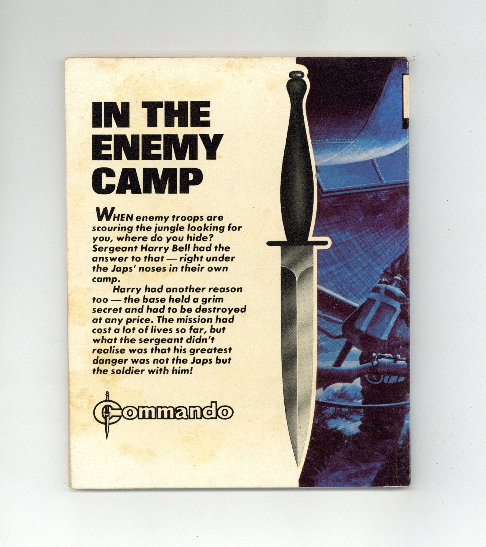 Published May 1982 by D. C. Thomson.$13.50Weekly British War comics digest. "In the Enemy Camp" Softcover, 5 1/2-in. x 6 1/2-in., 68 pages, B/W.
