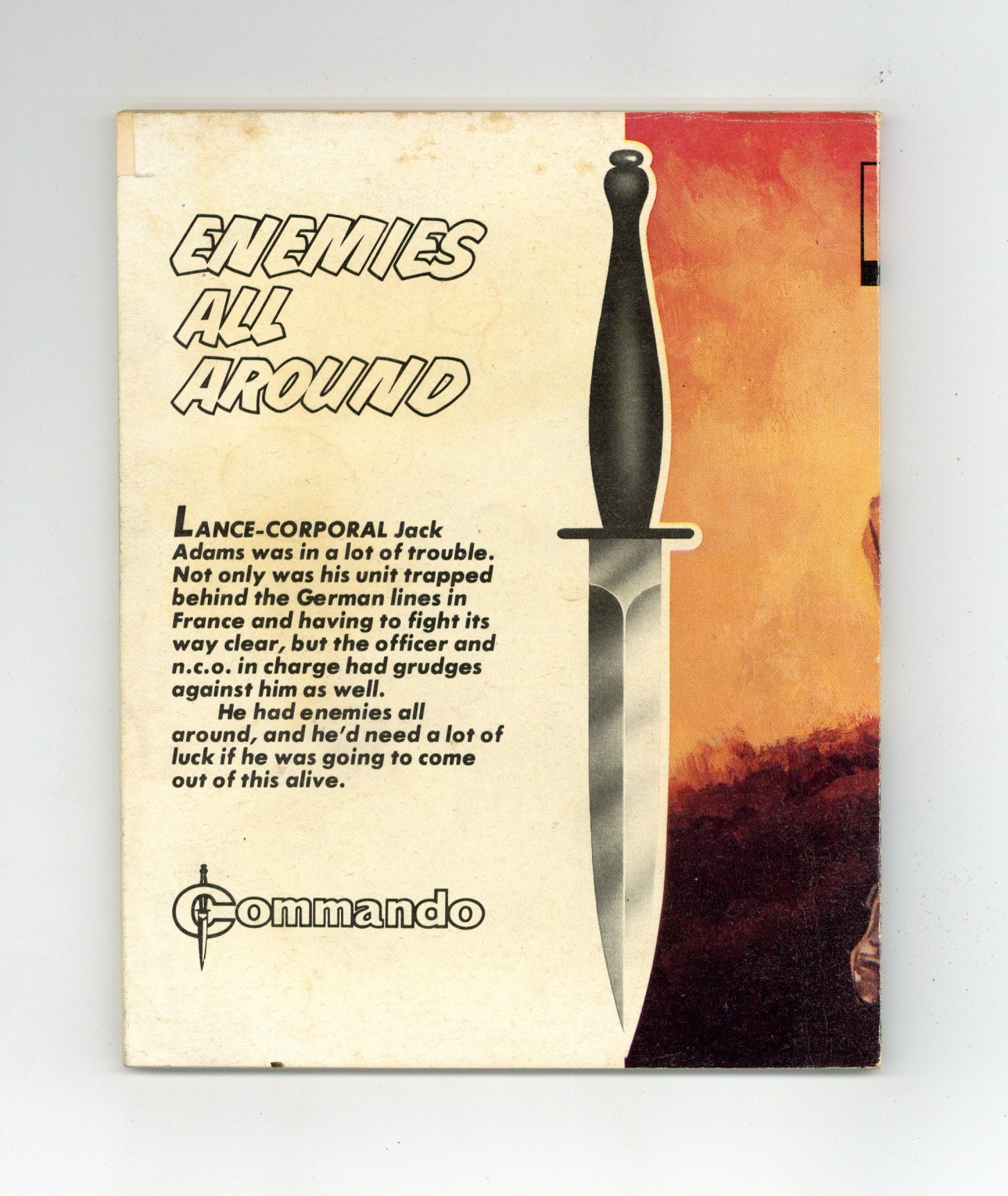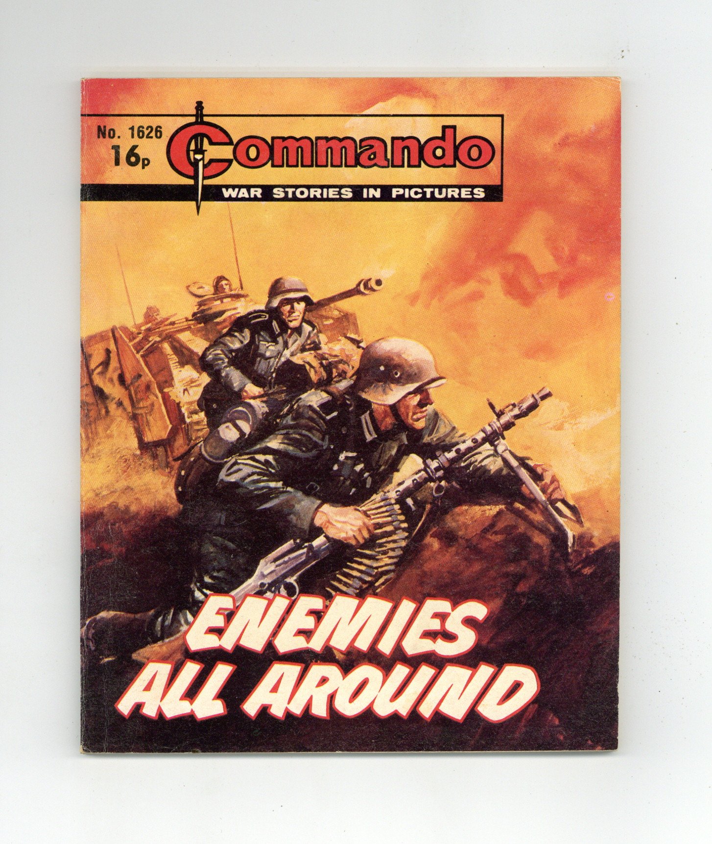 Published Jul 1992 by D. C. Thomson.$8.00Weekly British War comics digest. "Enemies All Around" Softcover, 5 1/2-in. x 6 1/2-in., 68 pages, B/W.