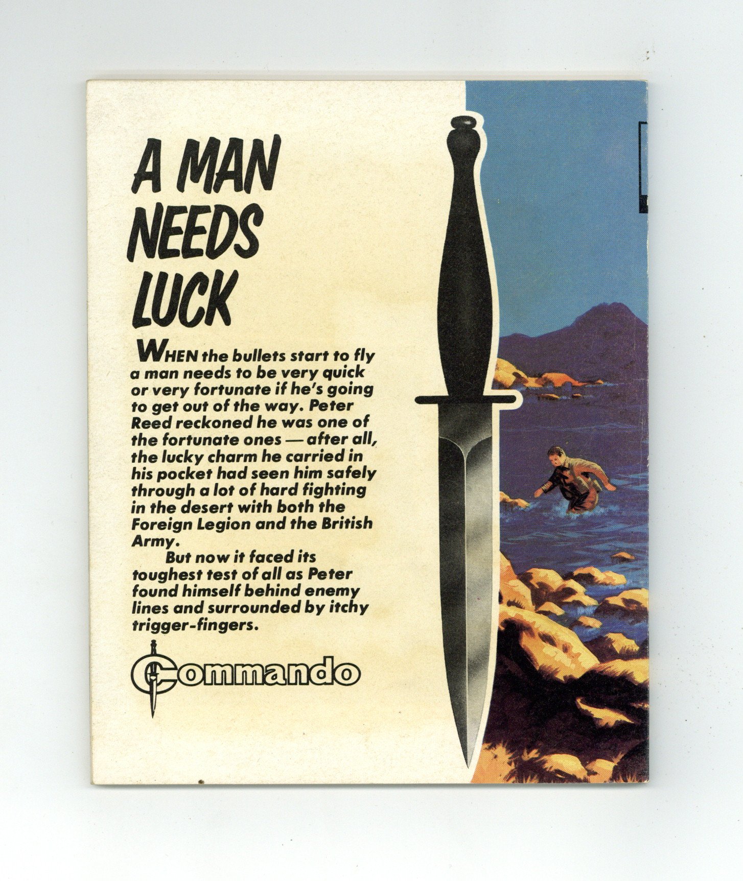 Published Jul 1983 by D. C. Thomson.$13.50Weekly British War comics digest. "A Man Needs Luck" Softcover, 5 1/2-in. x 6 1/2-in., 68 pages, B/W.