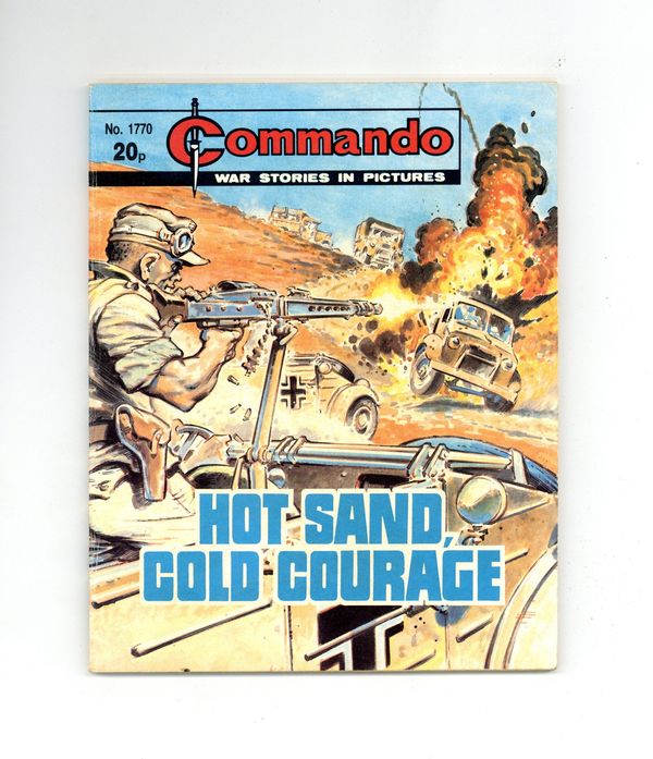 Published Jan 1984 by D. C. Thomson.$16.00Weekly British War comics digest. "Hot Sand, Cold Courage" Softcover, 5 1/2-in. x 6 1/2-in., 68 pages, B/W.