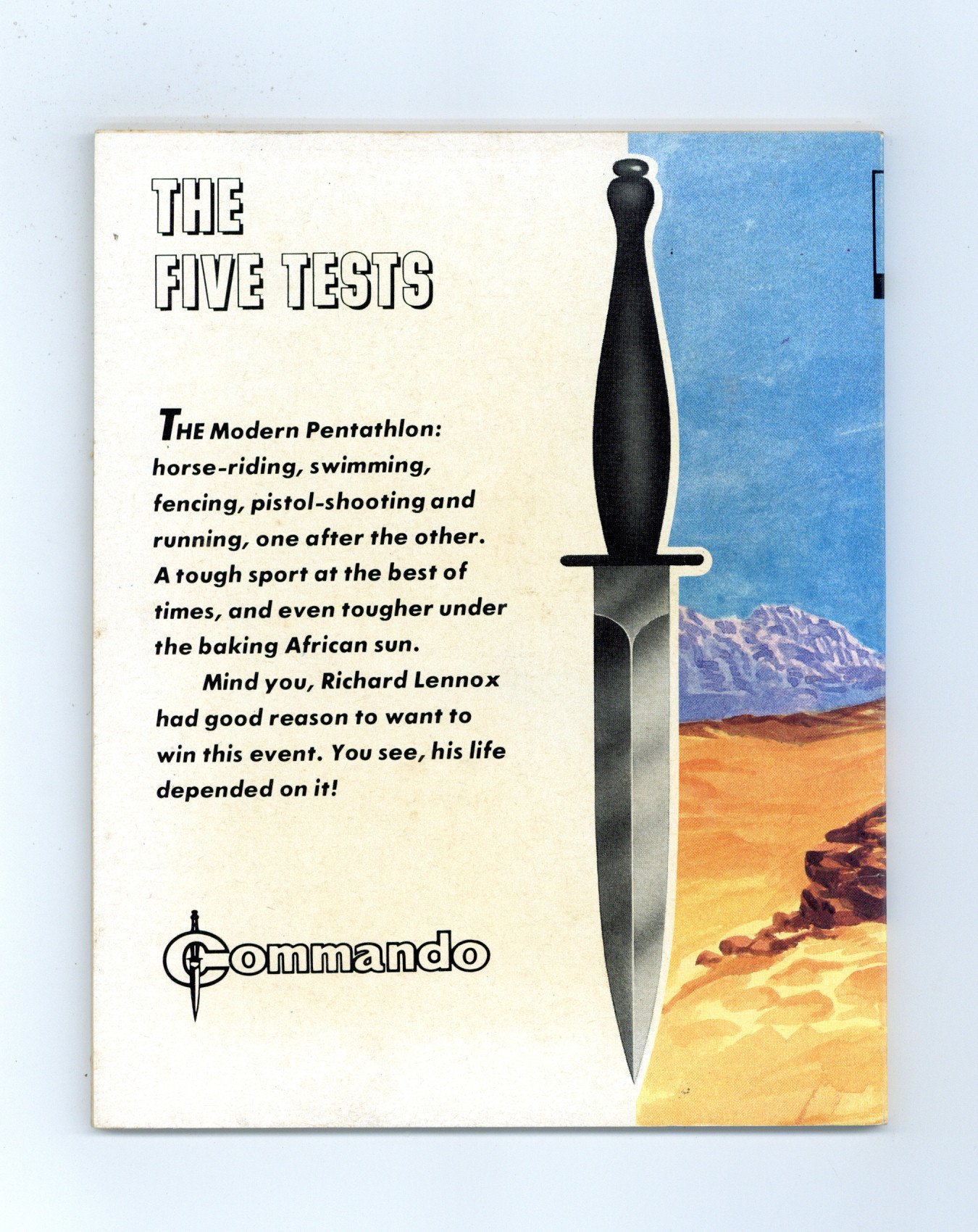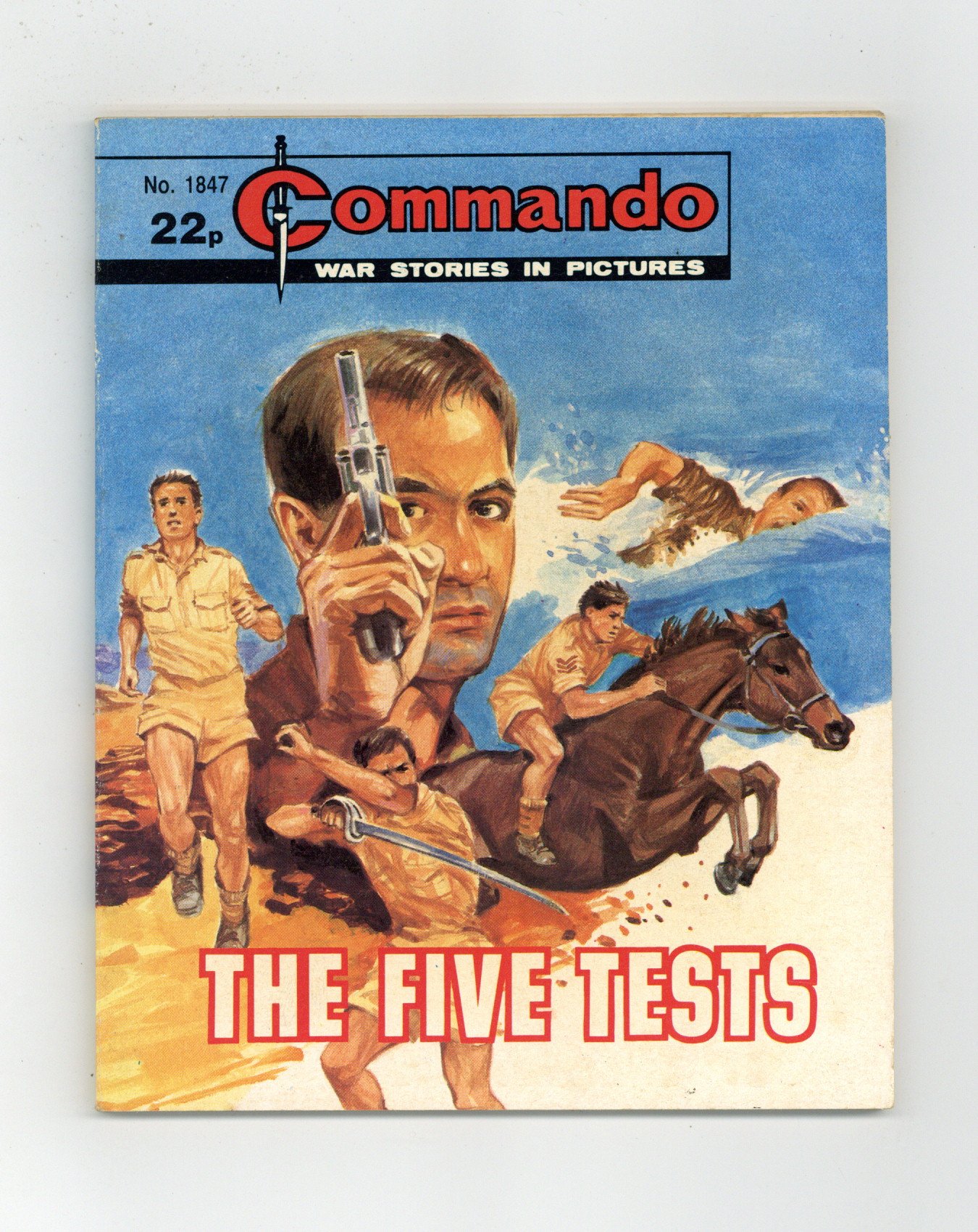 Published Nov 1984 by D. C. Thomson.$7.20Weekly British War comics digest. "The Five Tests" Softcover, 5 1/2-in. x 6 1/2-in., 68 pages, B/W.