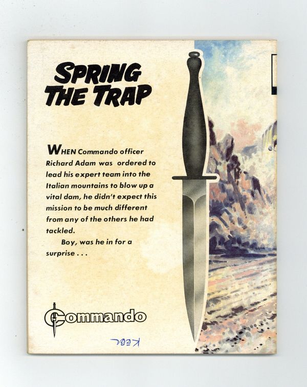 Published Jan 1985 by D. C. Thomson.$13.50Weekly British War comics digest. "Spring the Trap" Softcover, 5 1/2-in. x 6 1/2-in., 68 pages, B/W.