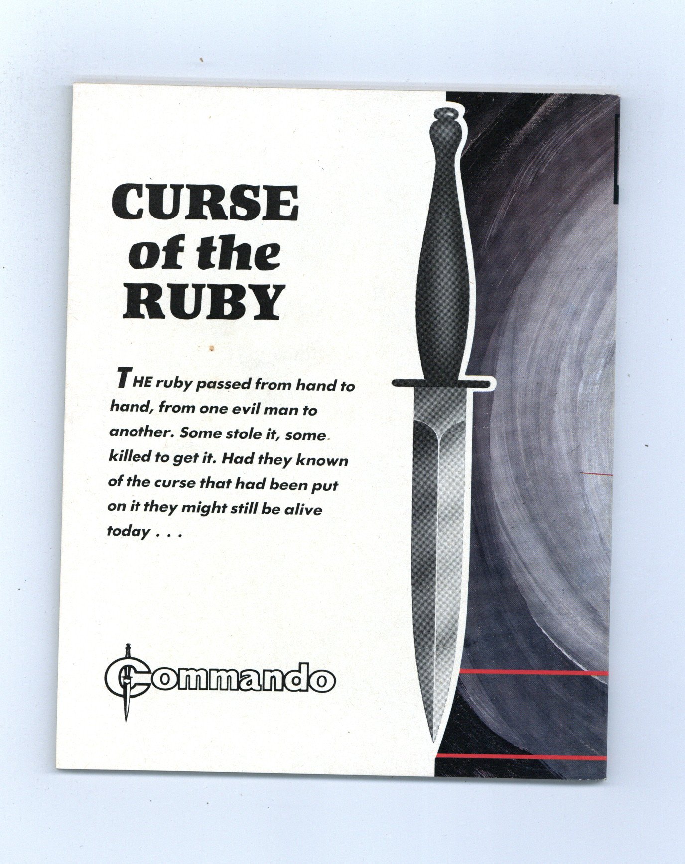 Published Dec 1986 by D. C. Thomson.$5.10Weekly British War comics digest. "Curse of the Ruby" Softcover, 5 1/2-in. x 6 1/2-in., 68 pages, B/W.