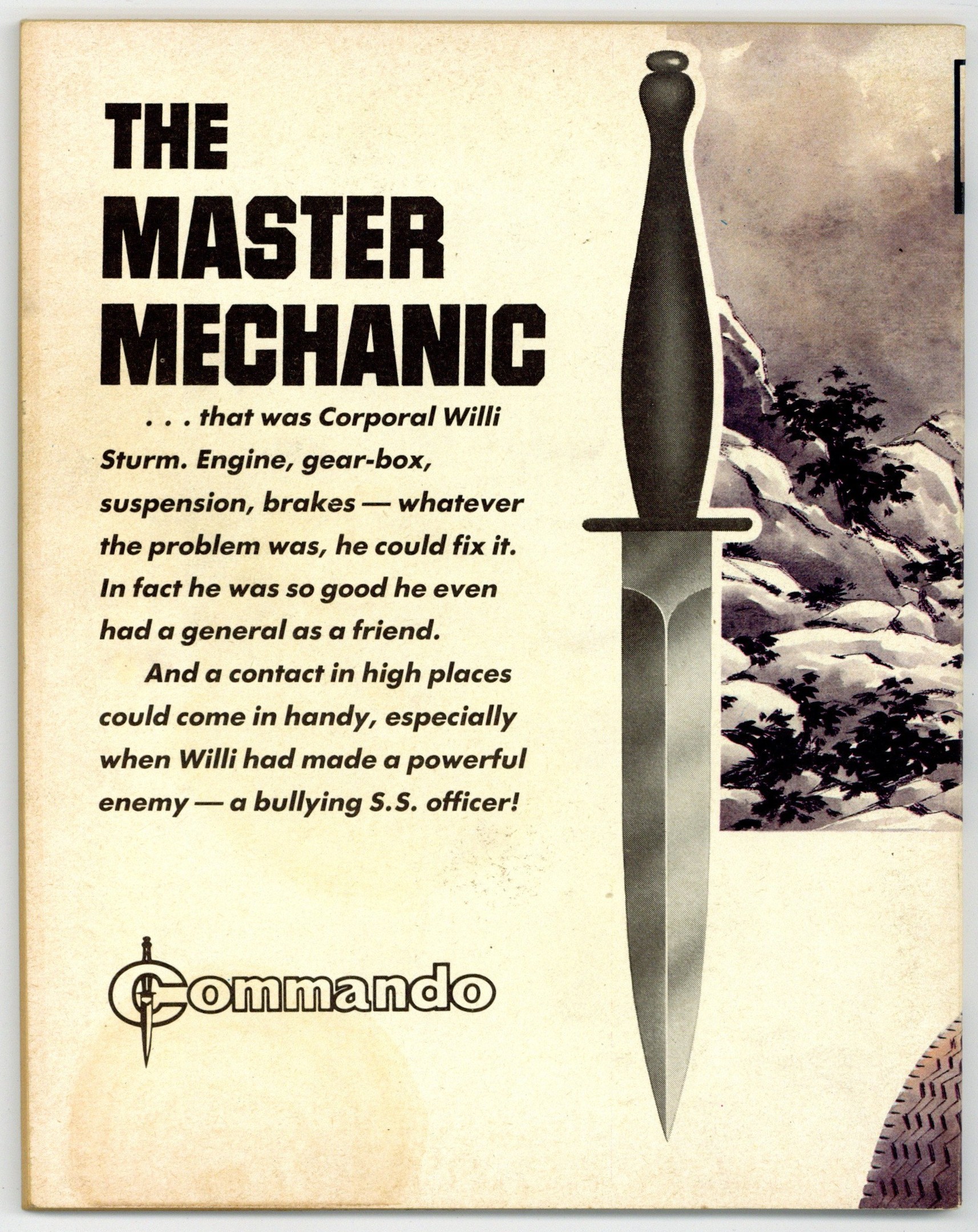 Published Aug 1987 by D. C. Thomson.$17.00Weekly British War comics digest. "The Master Mechanic" Softcover, 5 1/2-in. x 6 1/2-in., 68 pages, B/W.