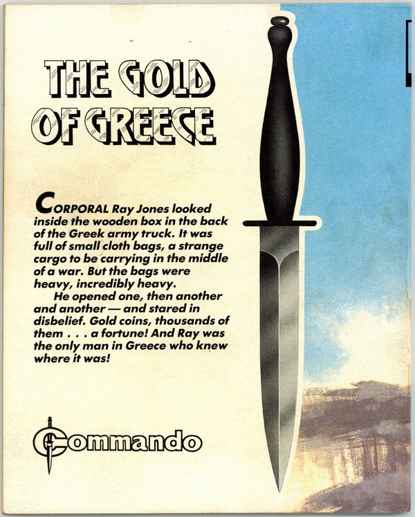 Published Aug 1990 by D. C. Thomson.$8.00Weekly British War comics digest. "The Gold of Greece" Softcover, 5 1/2-in. x 6 1/2-in., 68 pages, B/W.