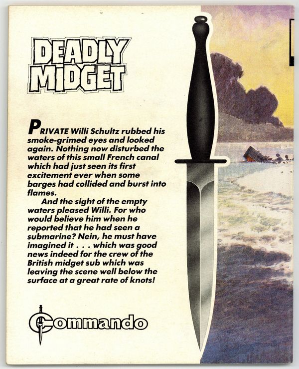 Published Aug 1990 by D. C. Thomson.$13.50Weekly British War comics digest. "Deadly Midget" Softcover, 5 1/2-in. x 6 1/2-in., 68 pages, B/W.