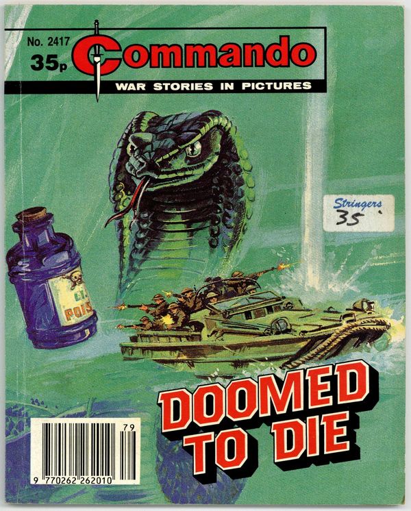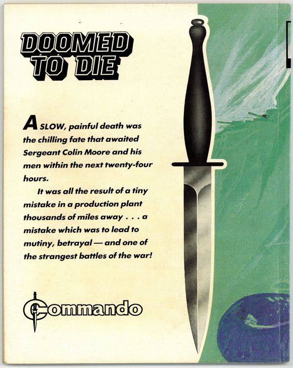 Published Oct 1990 by D. C. Thomson.$3.60Weekly British War comics digest. "Doomed to Die" Softcover, 5 1/2-in. x 6 1/2-in., 68 pages, B/W.