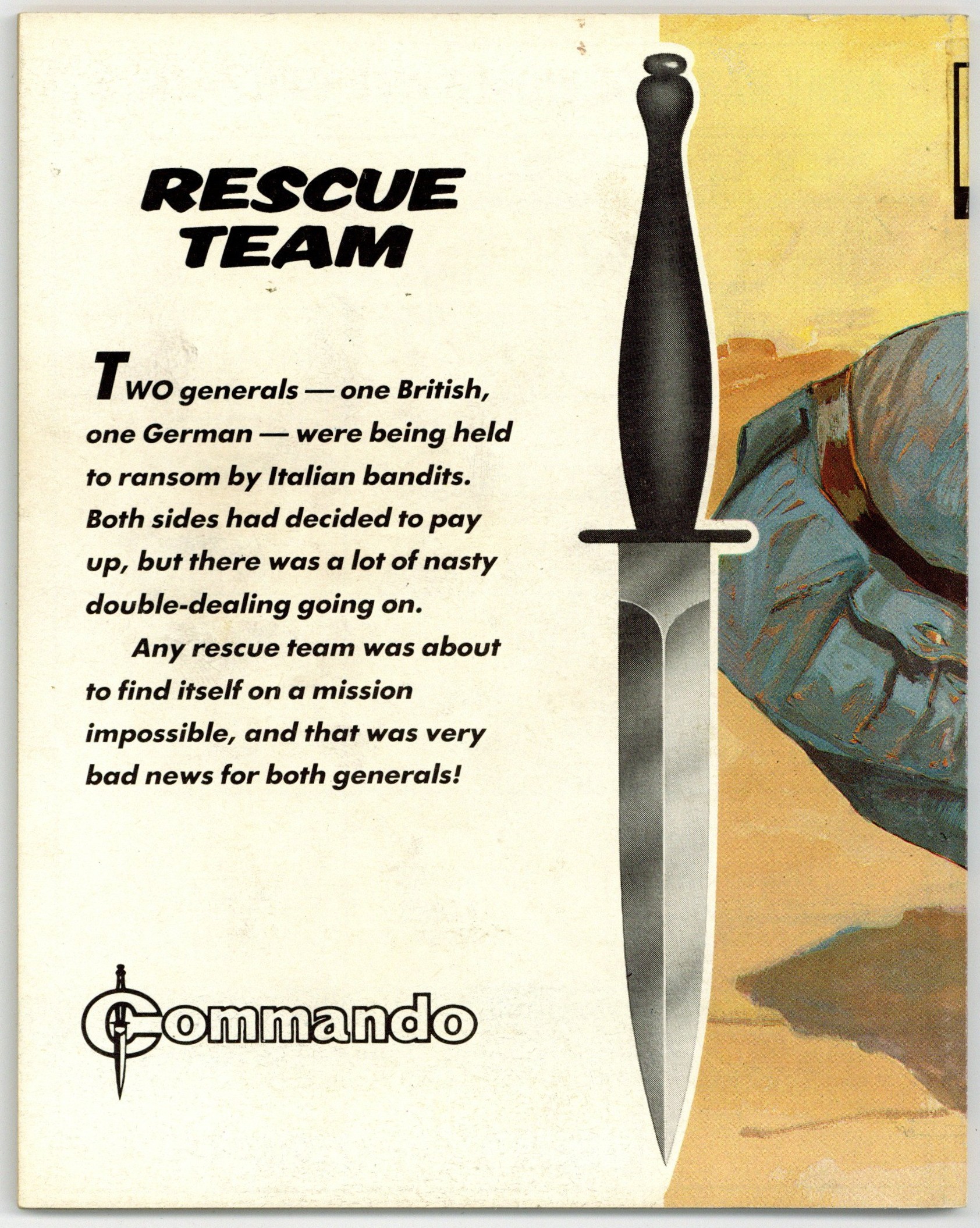 Published Jul 1991 by D. C. Thomson.$8.49Weekly British War comics digest. "Rescue Team" Softcover, 5 1/2-in. x 6 1/2-in., 68 pages, B/W.