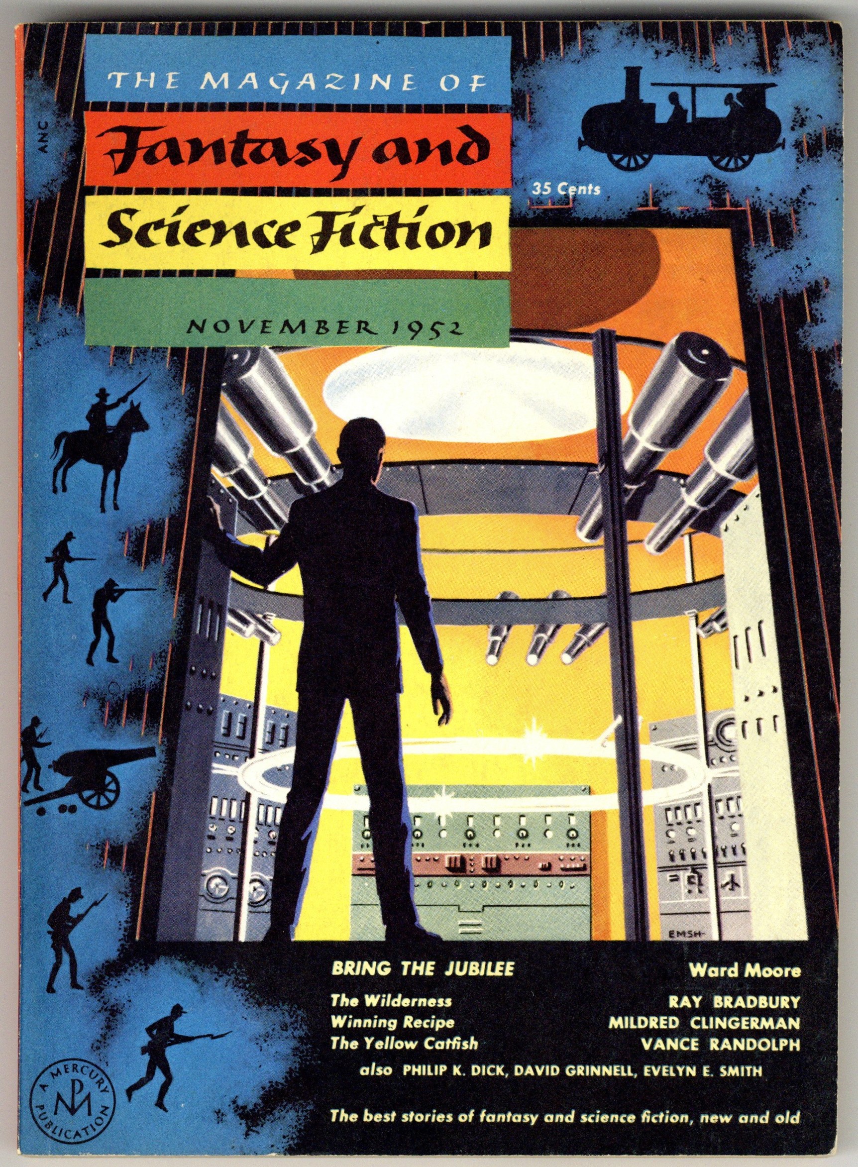Tags: Anthology / CollectionPublished Nov 1952 by Mercury Publications.$10.00November 1952. Cover by Ed Emshwiller. Fantasy and science fiction stories by Philip K. Dick, Mildred Clingerman, Donald A. Wollheim (as David Grinnel), Evelyn E. Smith, Ward Moore, Charles T. Webb, Vance Randolph, and Ray Bradbury. Softcover. 5.5-in. x 7.5-in. 132 pages, black and white (all text). Cover price $0.35.