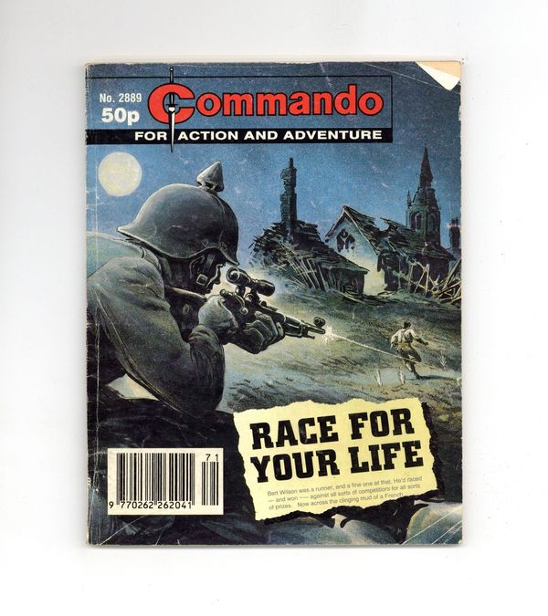 Published Sep 1995 by D. C. Thomson & Co..$5.60Weekly British War comics digest. "Race for your Life" Softcover, 5 1/2-in. x 6 1/2-in., 68 pages, B/W.
