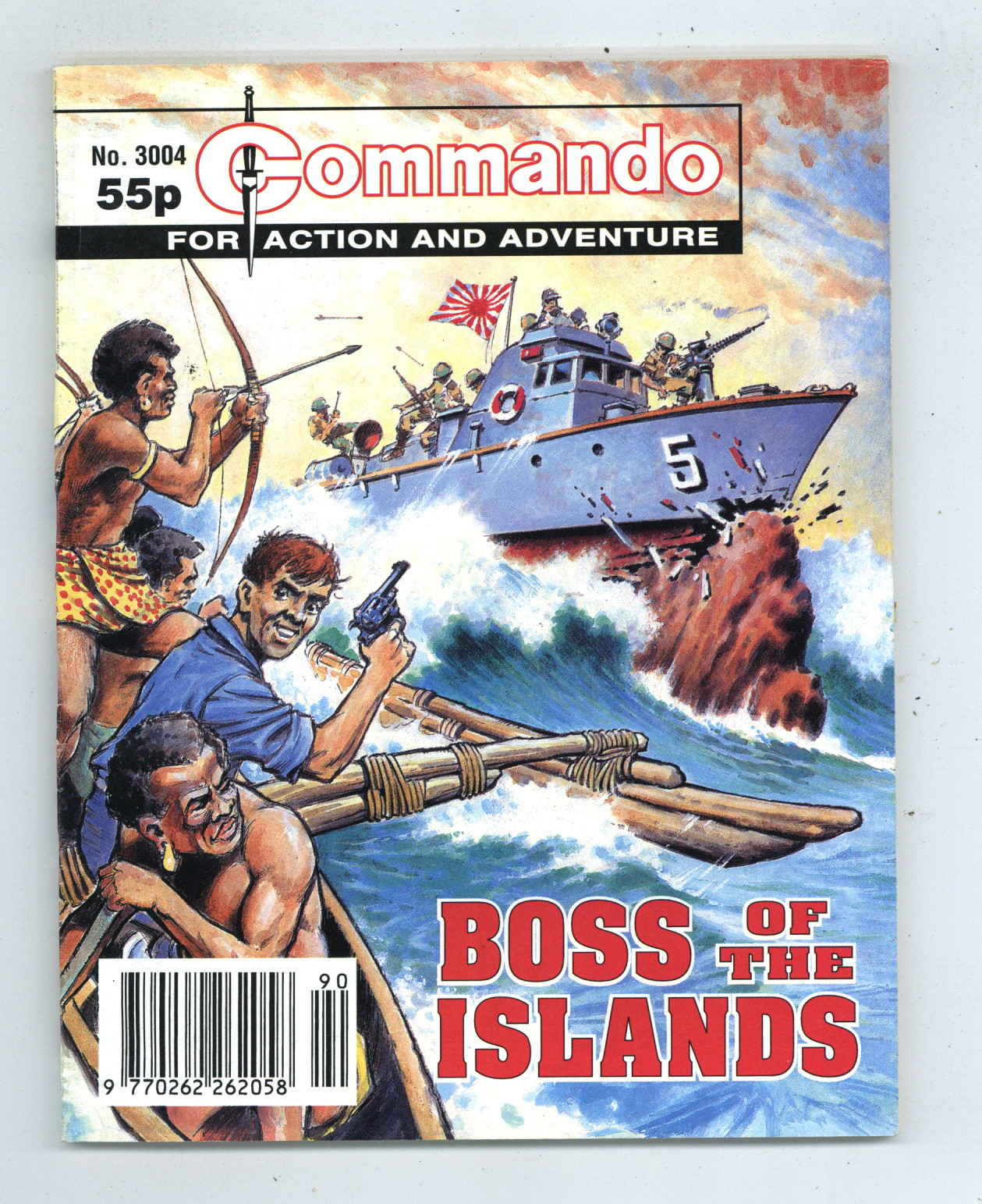 Published Dec 1996 by D. C. Thomson & Co..$3.20Weekly British War comics digest. "Boss of the Islands" Softcover, 5 1/2-in. x 6 1/2-in., 68 pages, B/W.