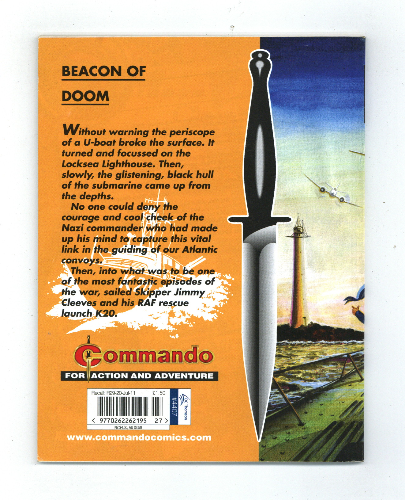 Reprinting Commando War Stories in Pictures (1961 D. C. Thomson Digest) #6: They Came by Night - Written by Coughlin. Art by Ros. Cover by Ken Barr. Without warning, the periscope of a U-boat broke the surface. It turned and focused on the Locksea Lighthouse. Then, slowly, the glistening, black hull of the submarine came up from the depths. No one could deny the courage and cool cheek of the Nazi Commander who had made up his mind to capture this vital link in the guiding of our Atlantic convoys. Then, into what was to be the most fantastic episodes of the war, sailed Skipper Jimmy Cleeves and his RAF rescue launch K20. Weekly British War comics digest. Softcover, 5 1/2-in. x 6 1/2-in., 68 pages, B&W.