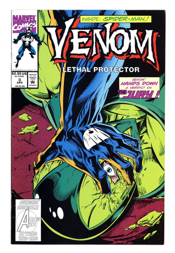 Direct Edition. The families of Venom's victims unite, vowing to kill him. Spider-Man's hot on Venom's trail, too, while secrets are revealed about Eddie Brock's past. Written by David Michelinie. Art by Mark Bagley, Sam de la Rosa and Al Milgrom. Cover by Mark Bagley and Sam de la Rosa. Cover price $2.95.