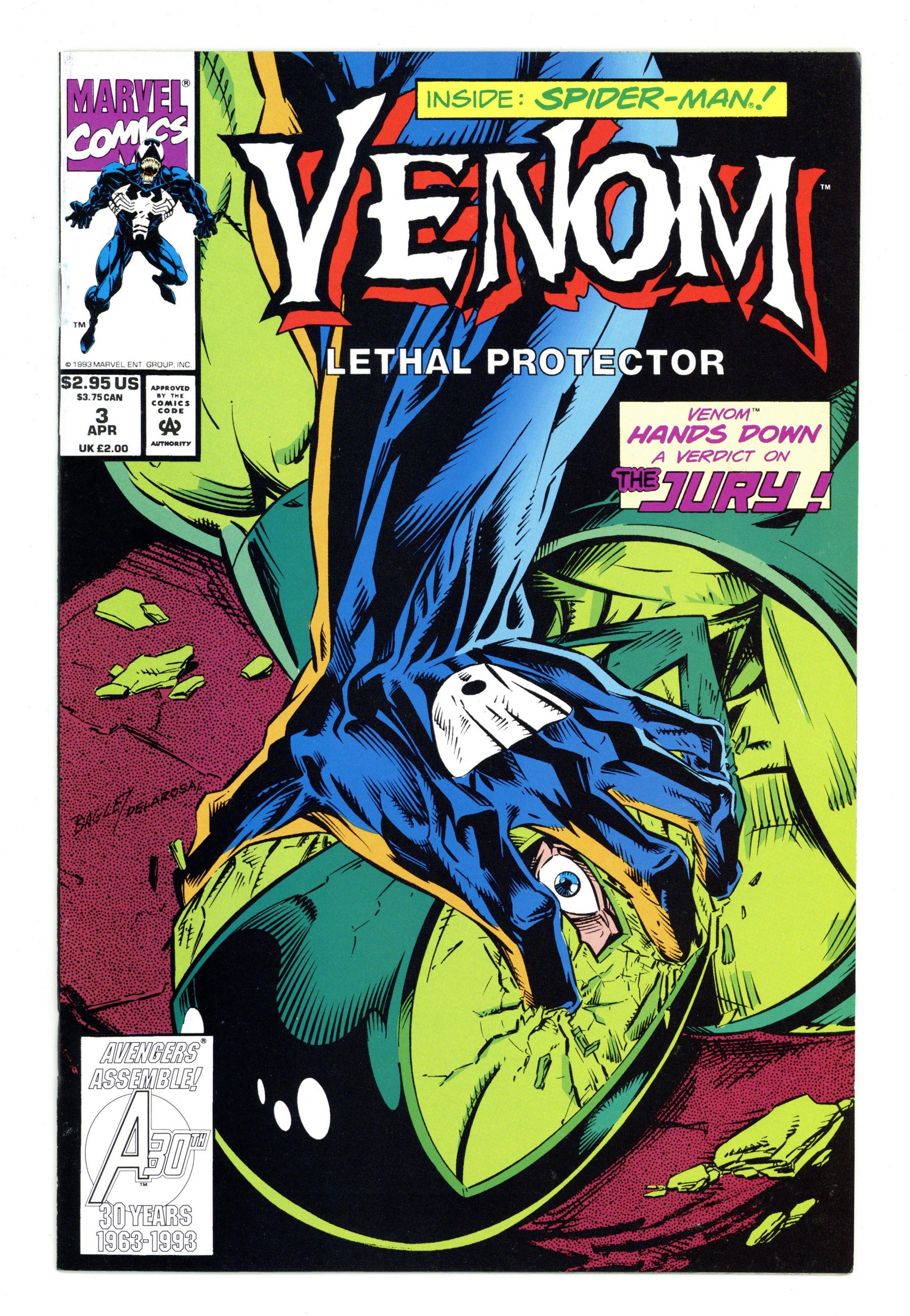 Tags: Marvel Legacy Numbering: Venom (part 3)$5.30Direct Edition. The families of Venom's victims unite, vowing to kill him. Spider-Man's hot on Venom's trail, too, while secrets are revealed about Eddie Brock's past. Written by David Michelinie. Art by Mark Bagley, Sam de la Rosa and Al Milgrom. Cover by Mark Bagley and Sam de la Rosa. Cover price $2.95.