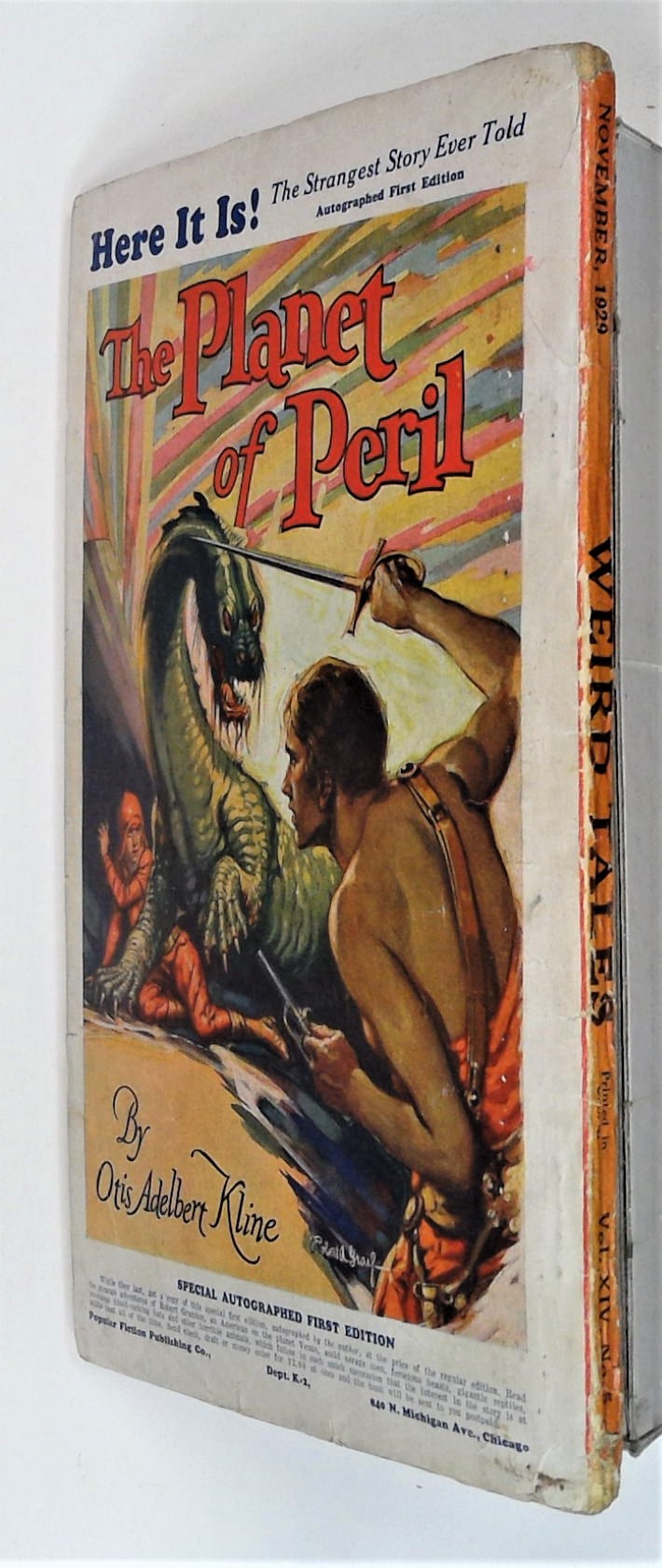 Volume 14, Issue 5 - November 1929. Edited by Farnsworth Wright. Horror and Fantasy stories in the pulp style. 6.75-in. x 10-in.; 128 newsprint pages, text (with B&W illustrations). Cover price $0.25.