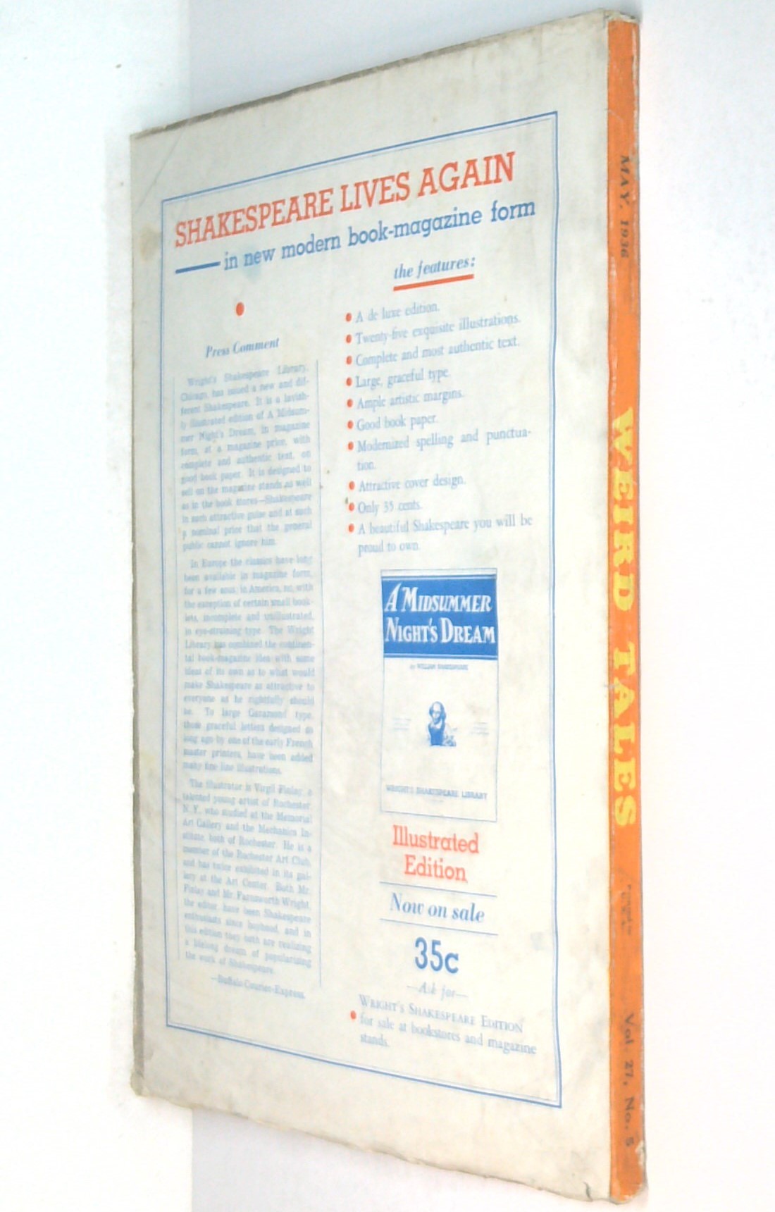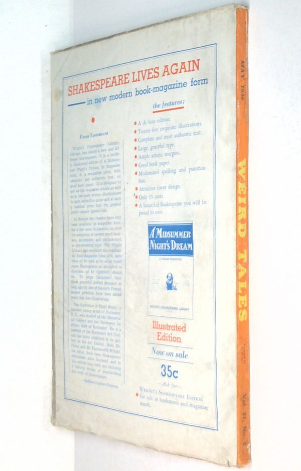 Tags: Anthology / CollectionPublished May 1936 by Weird Tales.$200.00- Paper: Cream to off white