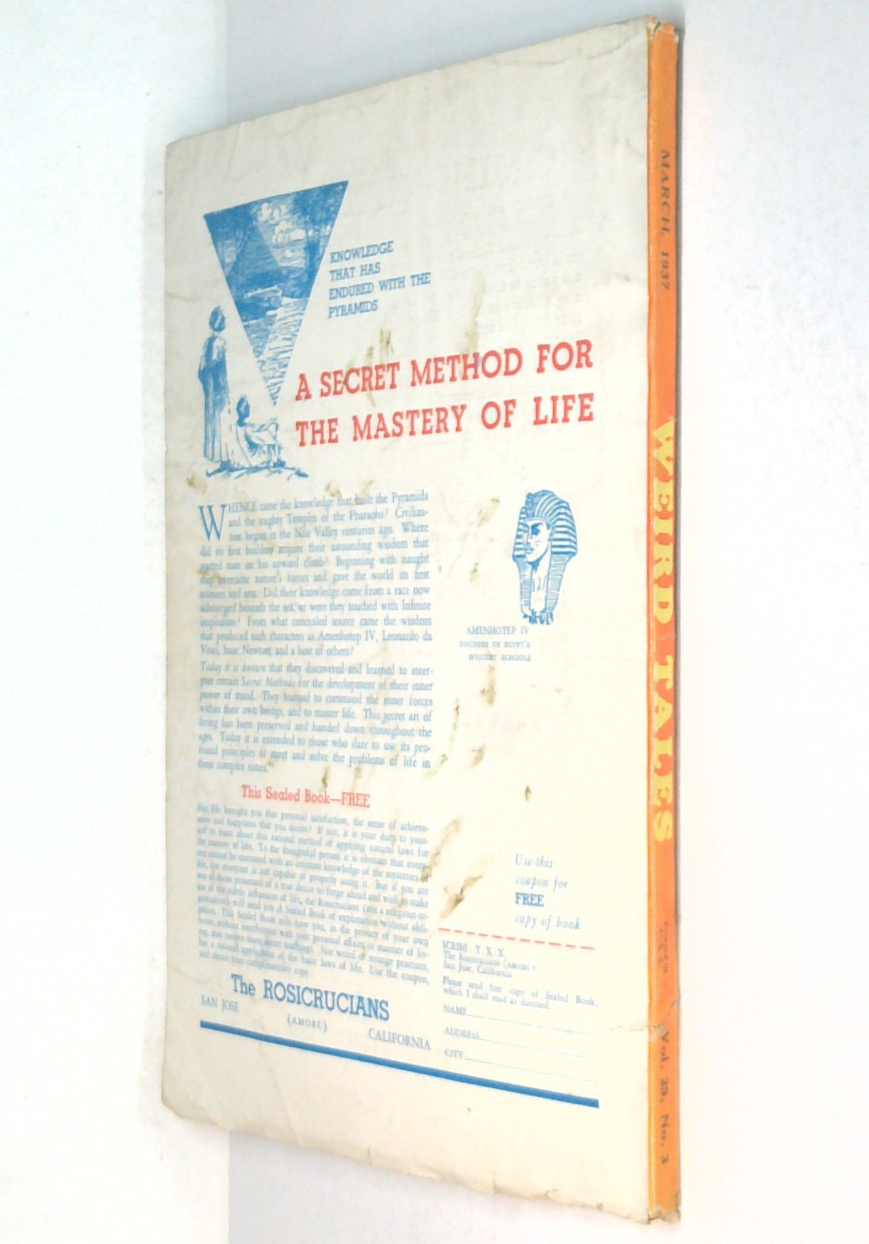 Volume 29, Issue 3 - March 1937. Edited by Farnsworth Wright. Horror and Fantasy stories in the pulp style. 6.75-in. x 10-in.; 128 newsprint pages, text (with B&W illustrations). Cover price $0.25.