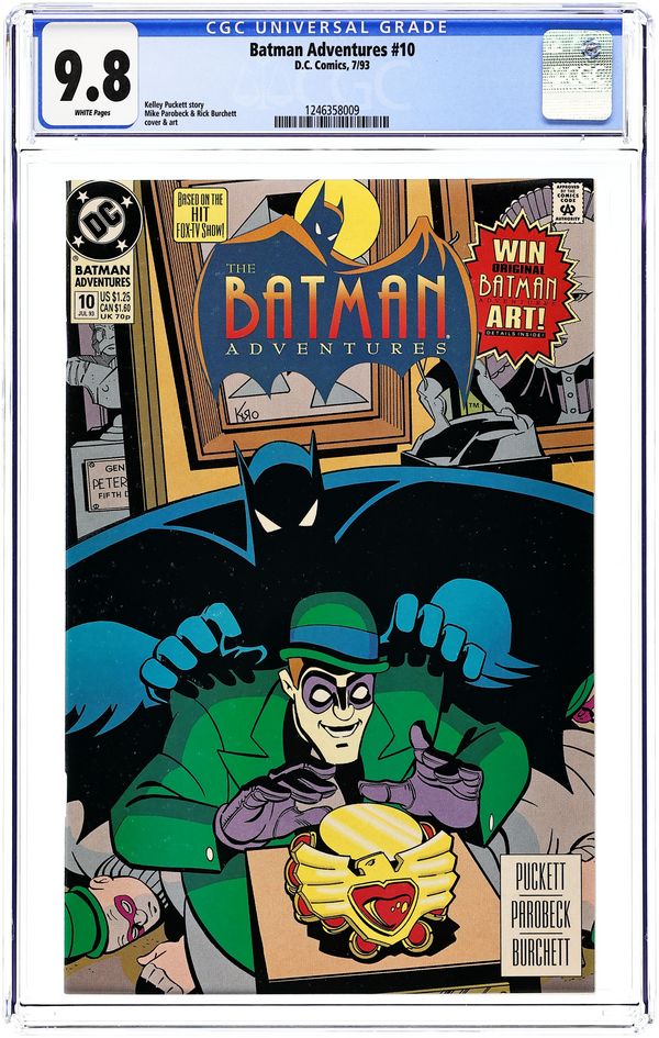 "The Last R?ddler Story." The Riddler, Mastermind, Mr. Nice, and The Perfesser take interest in rare jewels that are headed for a Gotham City museum. Based on Batman The Animated Series. Script by Kelley Puckett, pencils by Mike Parobeck, inks by Rick Burchett. Cover by Parobeck. Cover price $1.25.