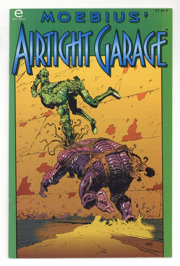 Published Jul 1993 by Marvel/Epic.$21.00Major Grubert's own creation, the Airtight Garage, has been taken over by his nemesis, Lewis Carnelian. After Grubert sends his spies to the Garage, he soon follows, knowing he must face Carnelian himself. Written by Moebius and R.J.M. Lofficier. Art and cover by Moebius. (see also Elsewhere Prince). Cover price $2.50.