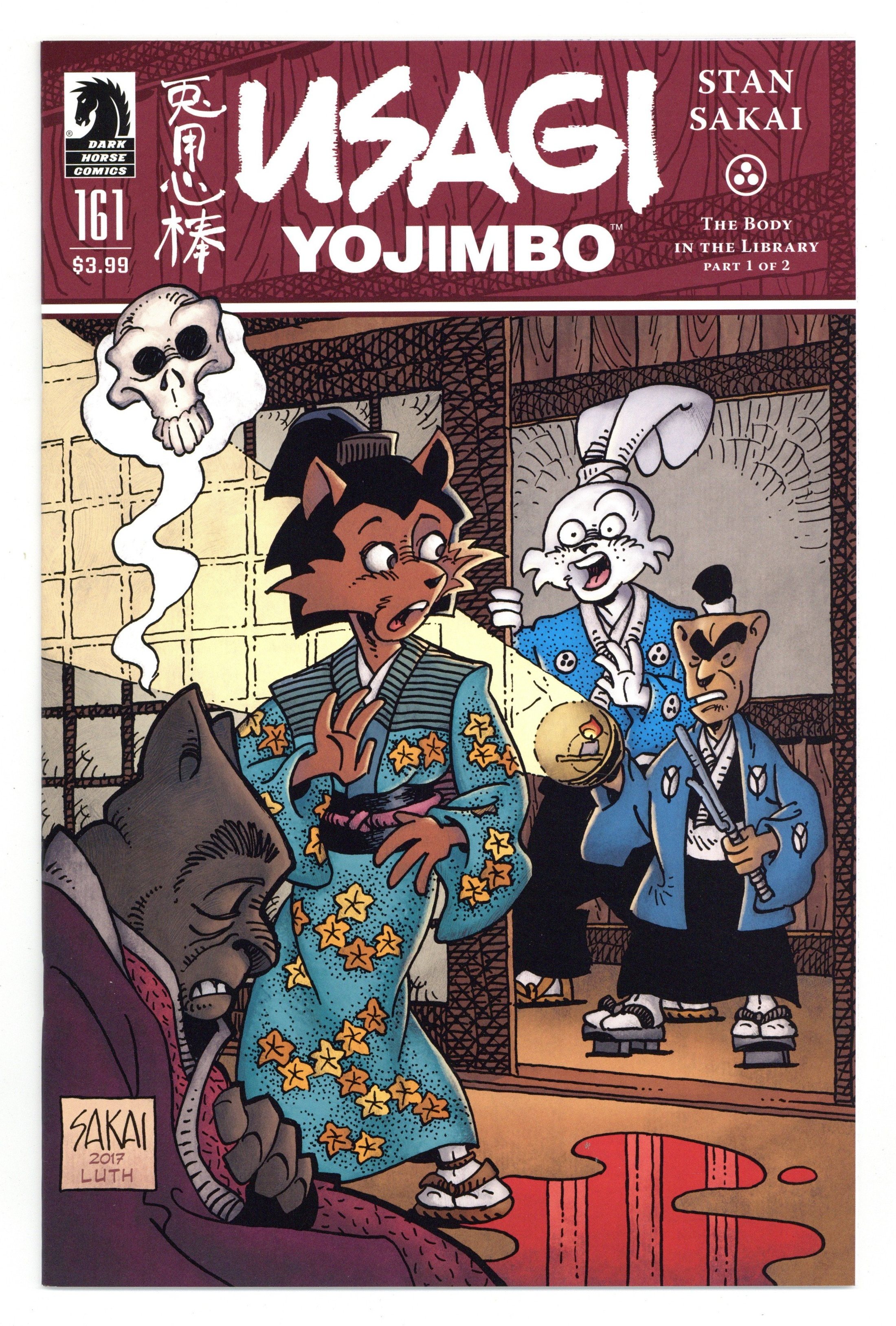 Published Sep 2017 by Dark Horse.$11.50Story, Art and Cover by Stan Sakai. The mischievous Kitsune and her young apprentice Kiyoko find themselves unexpectedly caught in the middle of a murder mystery. Luckily for them, Usagi and Inspector Ishida are leading the investigation. Can Usagi discover the culprit and clear the names of his sly friends, or has Kitsune finally exhausted her luck? Legendary comics creator Stan Sakai's original ongoing masterpiece! Part one of two-a great mystery begins for new fans! 24 pages, B&W. Cover price $3.99.