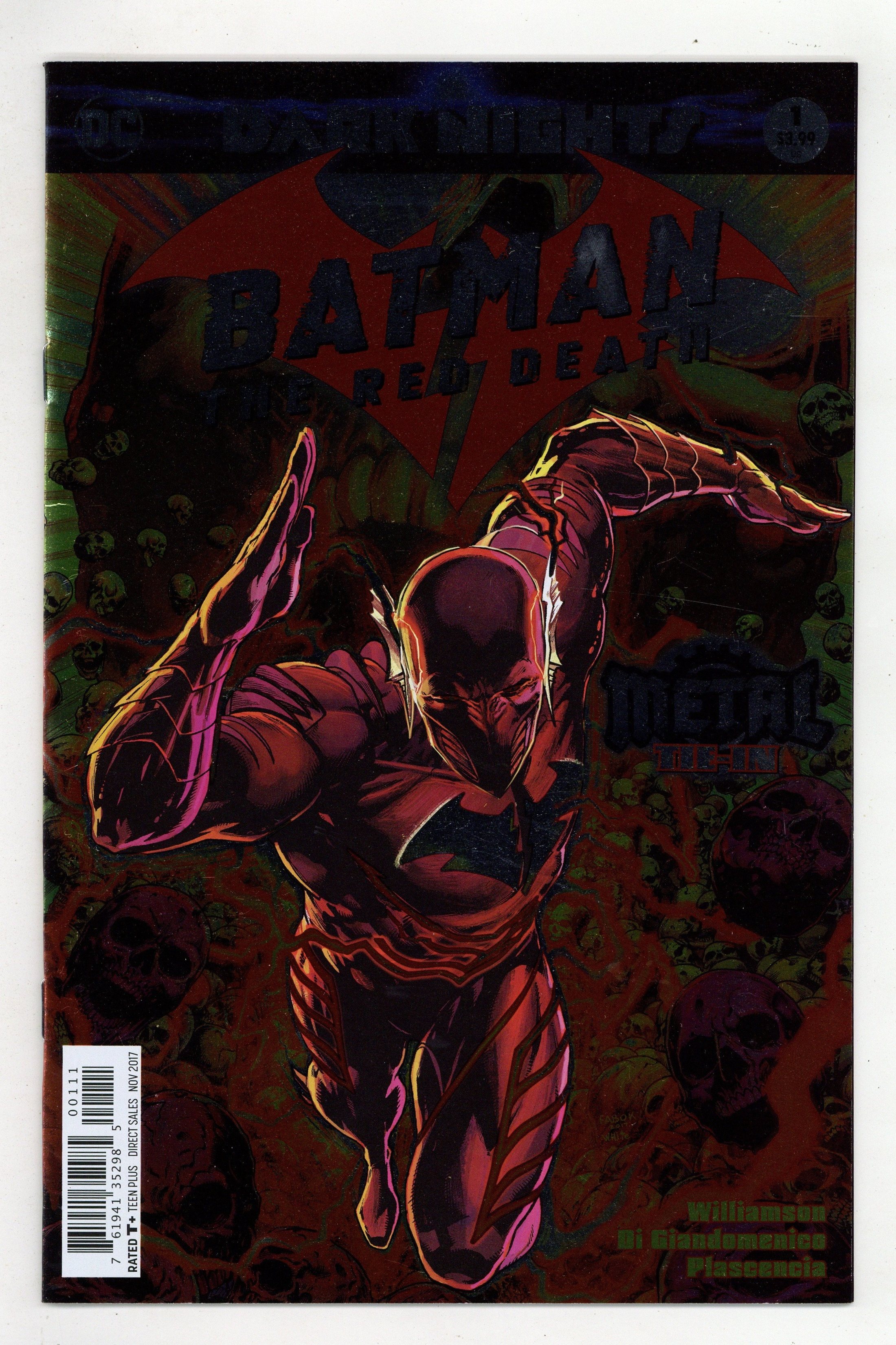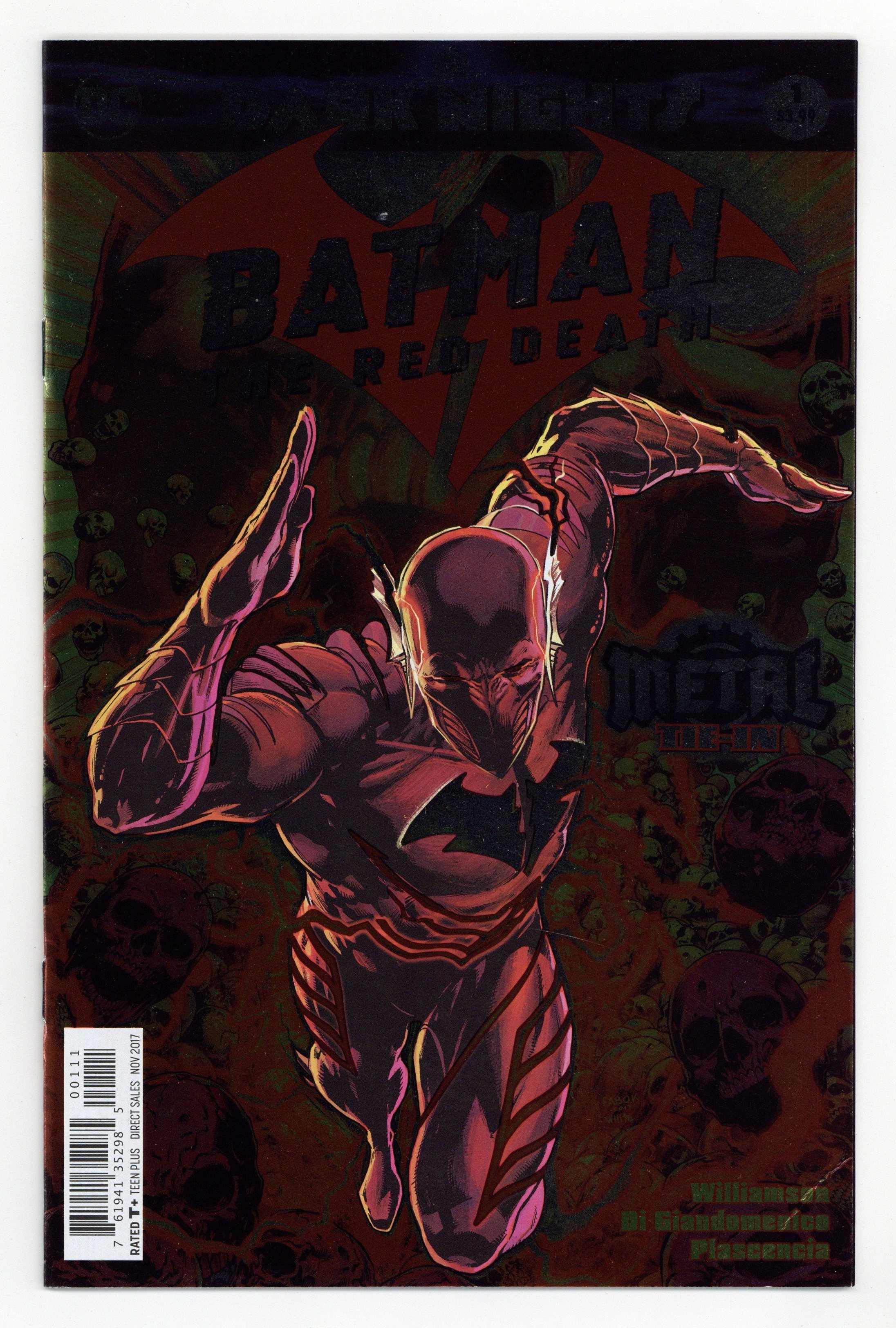 Tags: Dark Nights Metal (DC) (part 6), Batman$19.00Written by Joshua Williamson. Art by Carmine Di Giandomenico. Cover by Jason Fabok. As the events of DARK NIGHTS: METAL rock the DC Universe, the creatures of the Dark Multiverse stand ready to invade our world! How can even the World's Greatest Heroes stop a horde of deadly beings that appear to be powerful, nightmare versions of familiar figures? Find out in these special tie-in issues! 32 pages, full color. Rated T+ Cover price $3.99.