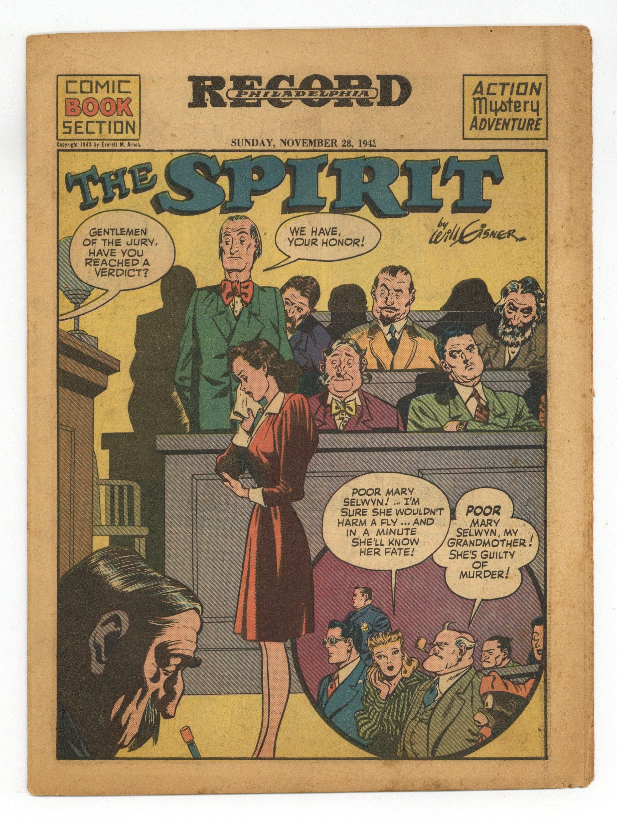 Spirit Weekly Newspaper Comic Insert. 7-1/2 x 10 inches, 16 pages, full color, all newsprint with no slick cover. Wellman/Woolfolk scripts, Fine pencils, Quality Staff inks.