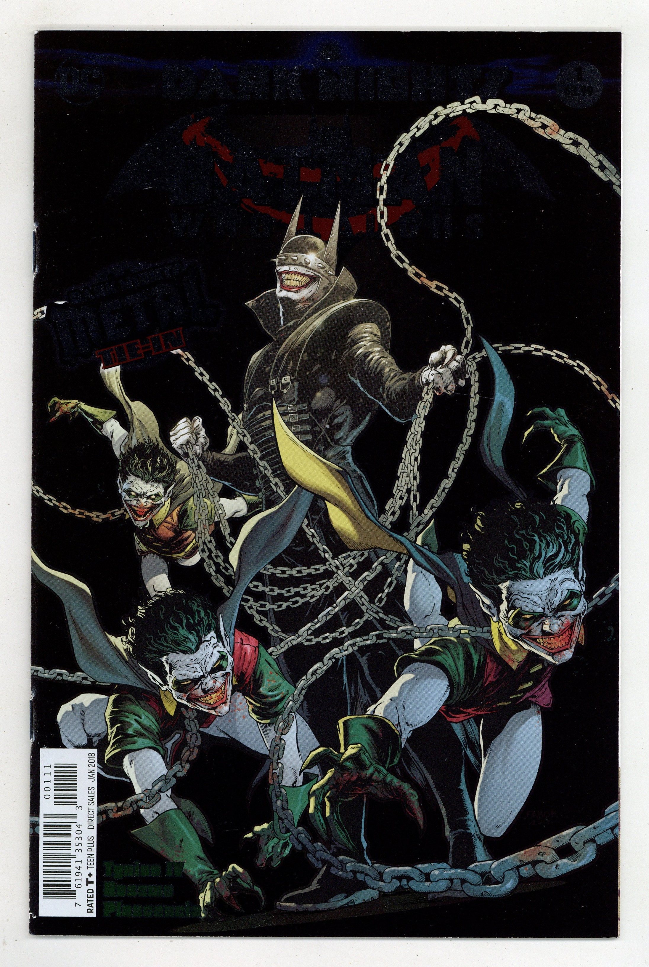 Tags: Dark Nights Metal (DC) (part 21), Batman$17.50Written by James Tynion IV. Art by Riley Rossmo. Cover by Jason Fabok. As the events of DARK NIGHTS: METAL rock the DC Universe, the creatures of the Dark Multiverse stand ready to invade our world! How can the World's Greatest Heroes stop a horde of deadly beings that appear to be powerful nightmare versions of familiar figures? Find out in these special tie-in issues! 32 pages, full color, Rated T+ Cover price $3.99.