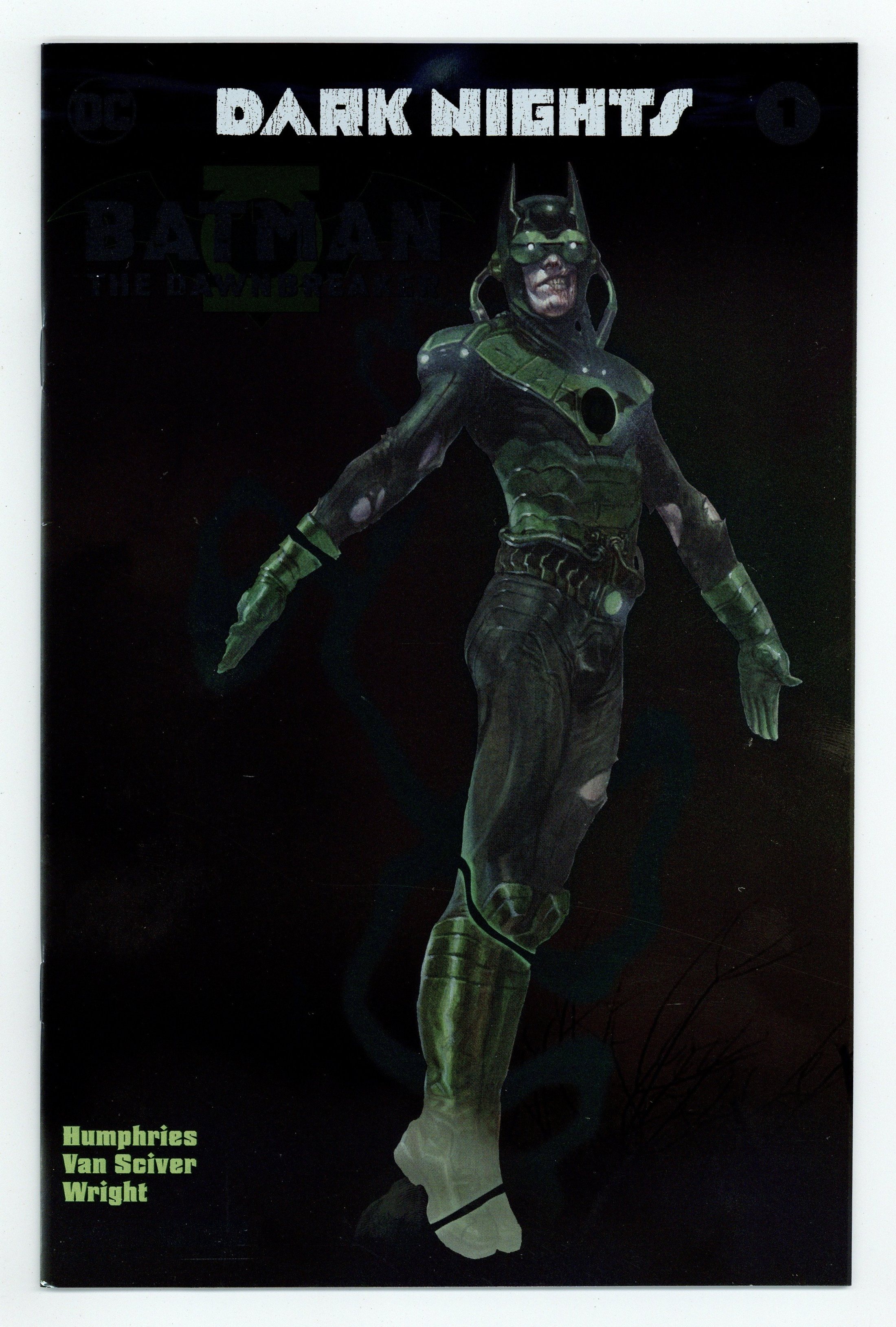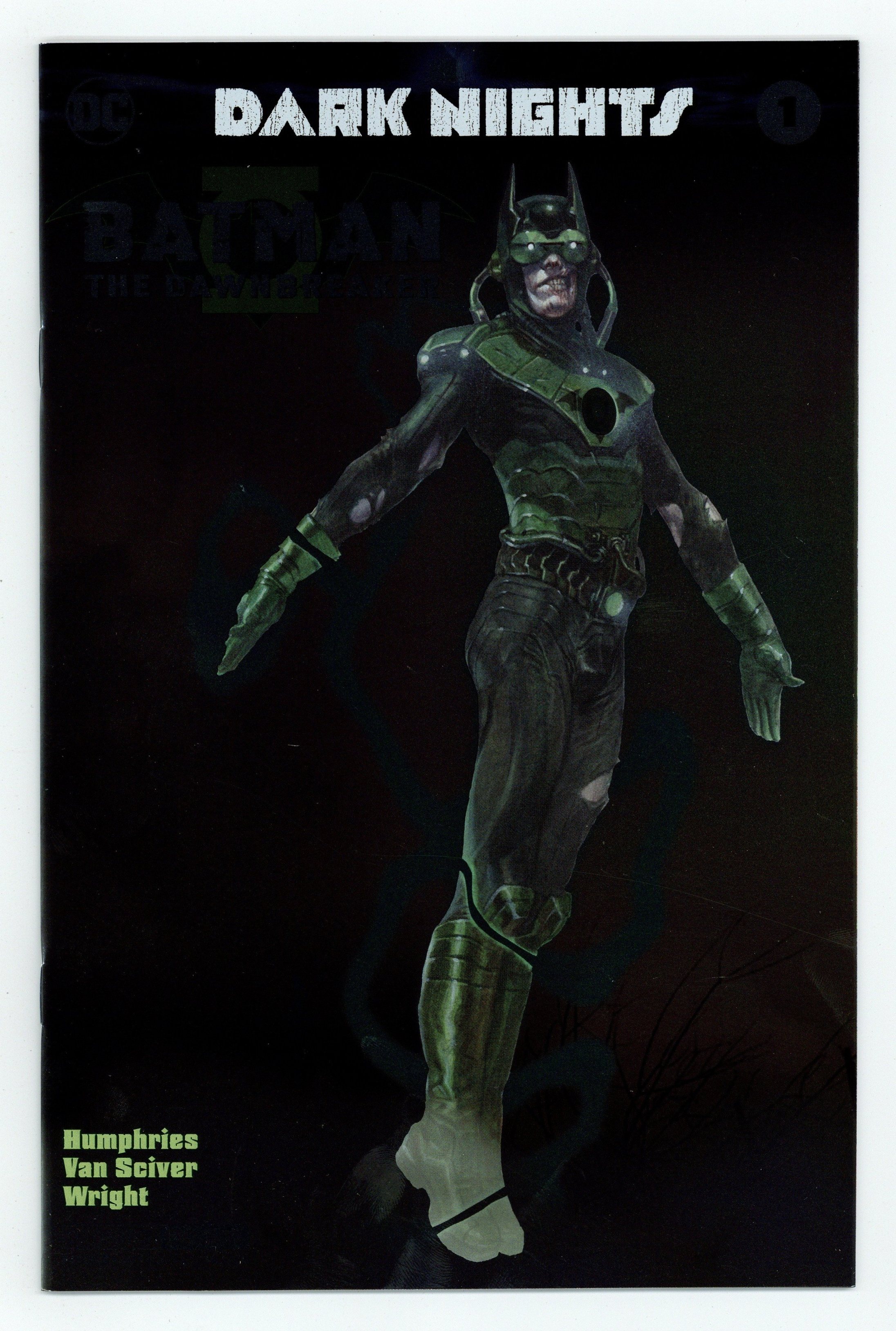 Convention Exclusive Foil Cover. Written by Sam Humphries. Art by Ethan Van Sciver. Cover by Jason Fabok. As the events of DARK NIGHTS: METAL rock the DC Universe, the creatures of the Dark Multiverse stand ready to invade our world! How can even the World's Greatest Heroes stop a horde of deadly beings that appear to be powerful, nightmare versions of familiar figures? Find out in these special tie-in issues! 32 pages, full color. Rated T+