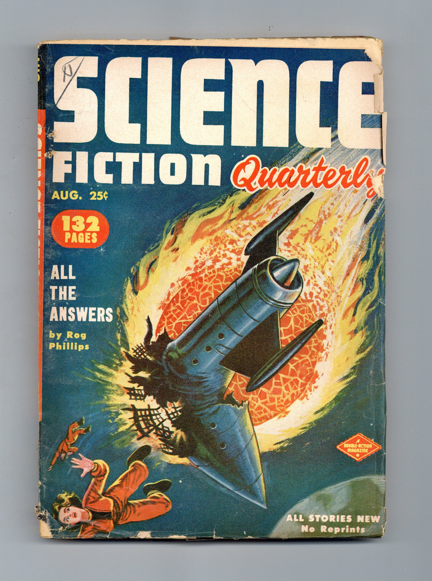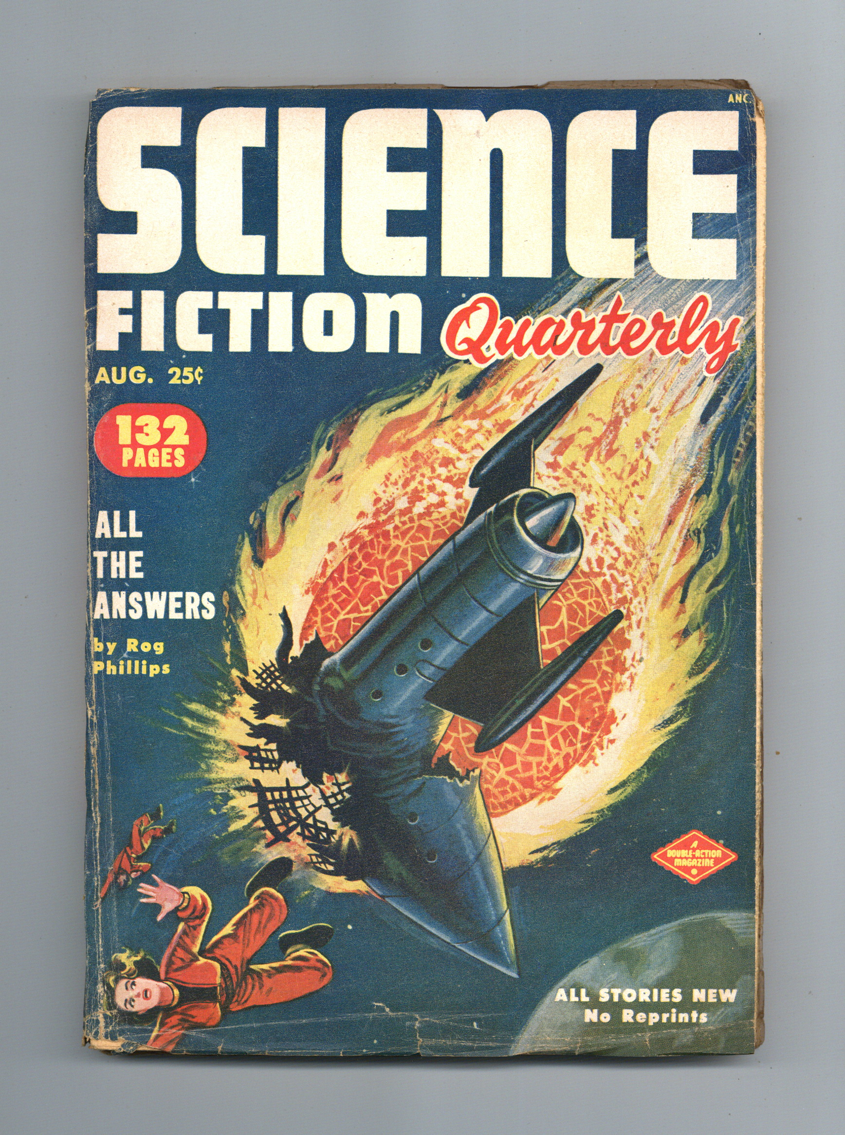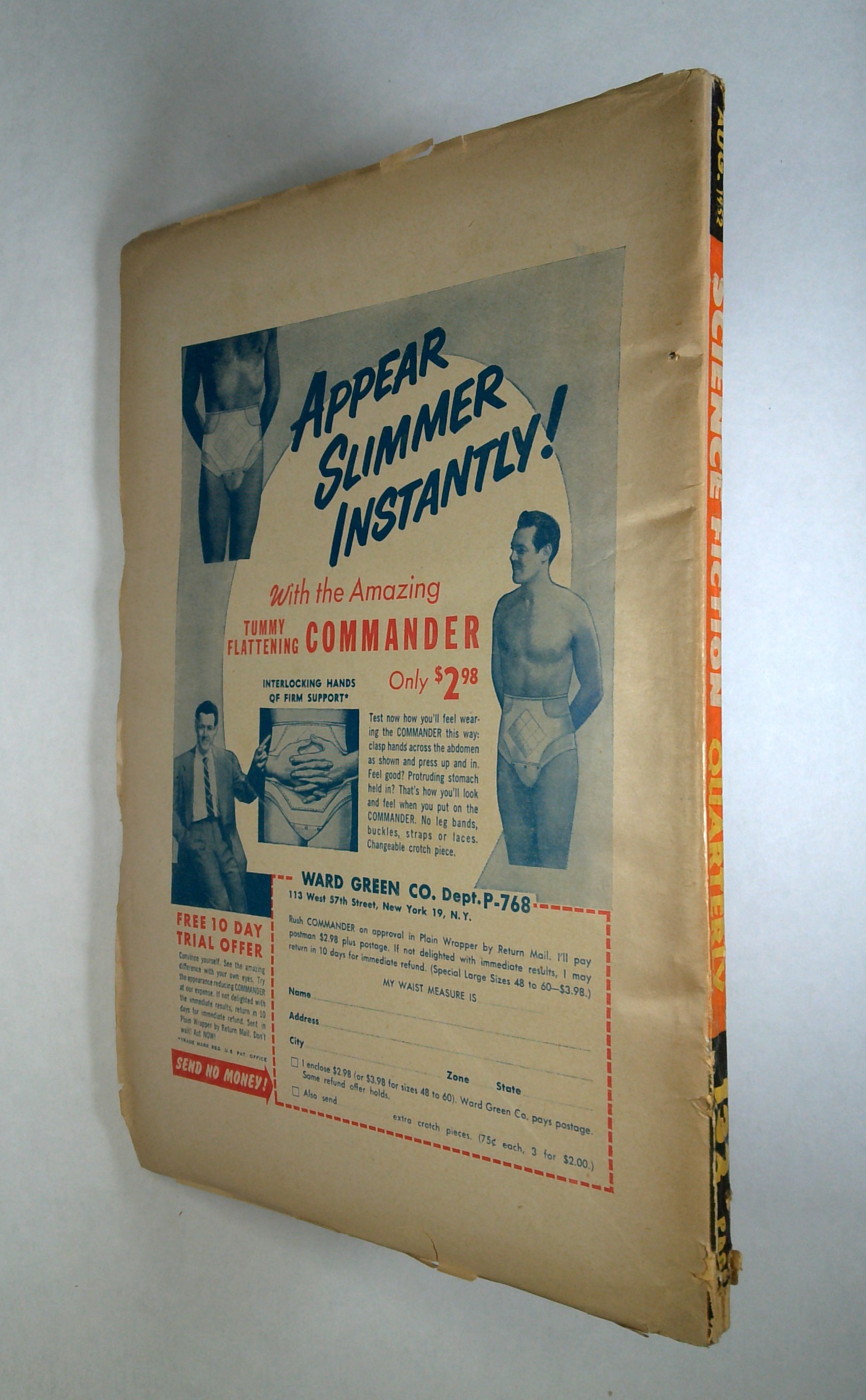 Cover by Milton Luros. Stories by Rog Phillips, Hamlin Daly, Vaseieos Garson, Milton Lesser, Alfred Coppel, Charles Dye, and S. A. Lombino. Interior illustrations by H. W. Kiemle, Milton Luros, Murphy, Peter Poulton. Softcover pulp magazine; 7-in. x 10-in.; 130 pages; B&W. Cover price $0.25.