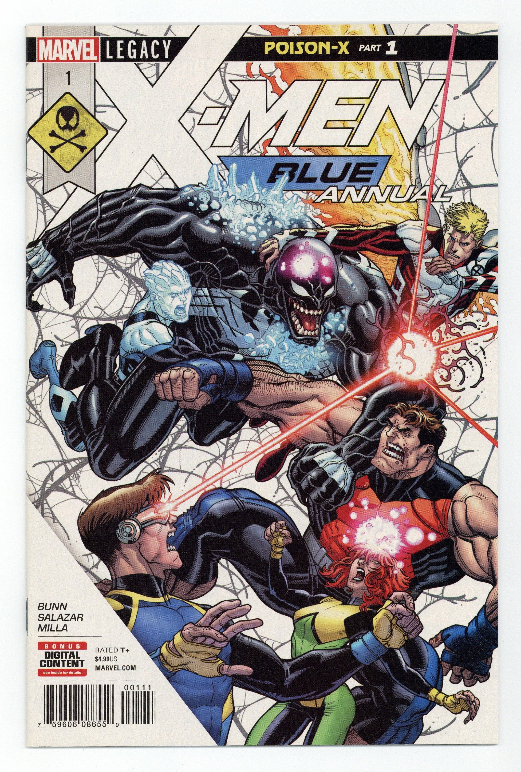 Tags: Poison-X (Marvel) (part 1), X-Men$16.00Poison-X: Part 1 of 5 - THE CROSSOVER BETWEEN VENOM AND X-MEN BLUE STARTS HERE! Written by Cullen Bunn. Art by Edgar Salazar. Cover by Nick Bradshaw. Spinning out of the events of Venomverse, the Children of the Atom and the Lethal Protector team up to take down an extradimensional threat! This is it, folks, the team-up you've been asking for: X-MEN BLUE and VENOM must band together in the cold reaches of space to protect our universe from a threat more diabolical than you can imagine. But will EDDIE BROCK, his faithful SYMBIOTE, MARVEL GIRL, CYCLOPS, ICEMAN, BEAST and ANGEL be enough to save this universe? I really, really hope so. 36 pages, full color. Rated T+ NOTE: Story continues in X-Men: Blue #21. Cover price $4.99.
