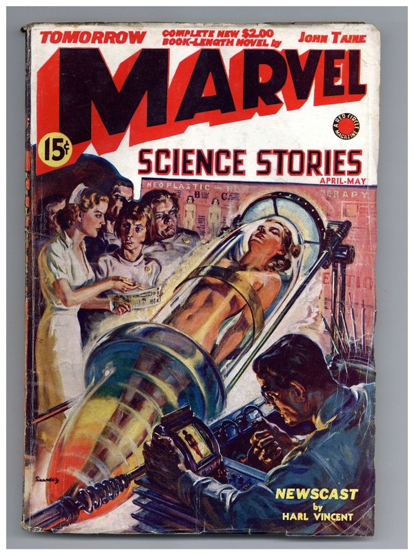 Starts Jan 3 April 1939. Cover by Norman Saunders. Science Fiction stories by John Taine and Harl Vincent. 7" x 10"; black and white; 128 newsprint pages. Cover price $0.15.