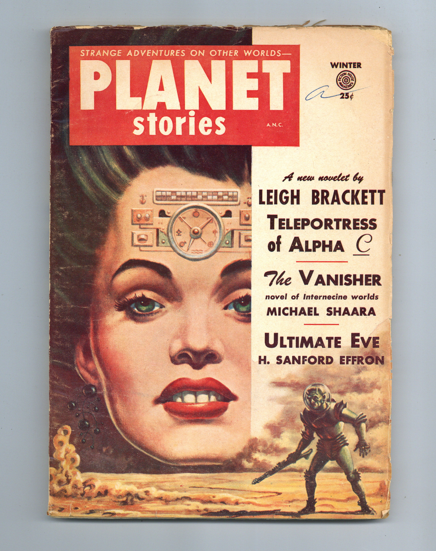 Winter 1954-55. Cover by Algis Budrys. "Teleportress of Alpha C" by Leigh Brackett. Other stories by Michael Shaara, Charles A. Stearns, Raymond E. Banks, Mike Curry, Fred Freair, and H. Sanford Effron. 7-in. x 9.75-in.; black and white; 96 pages. Cover price $0.25.