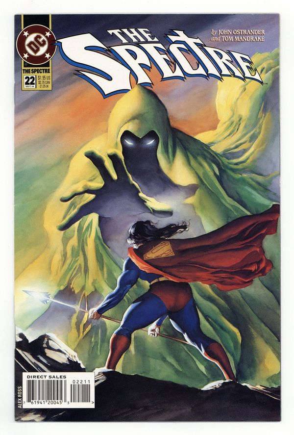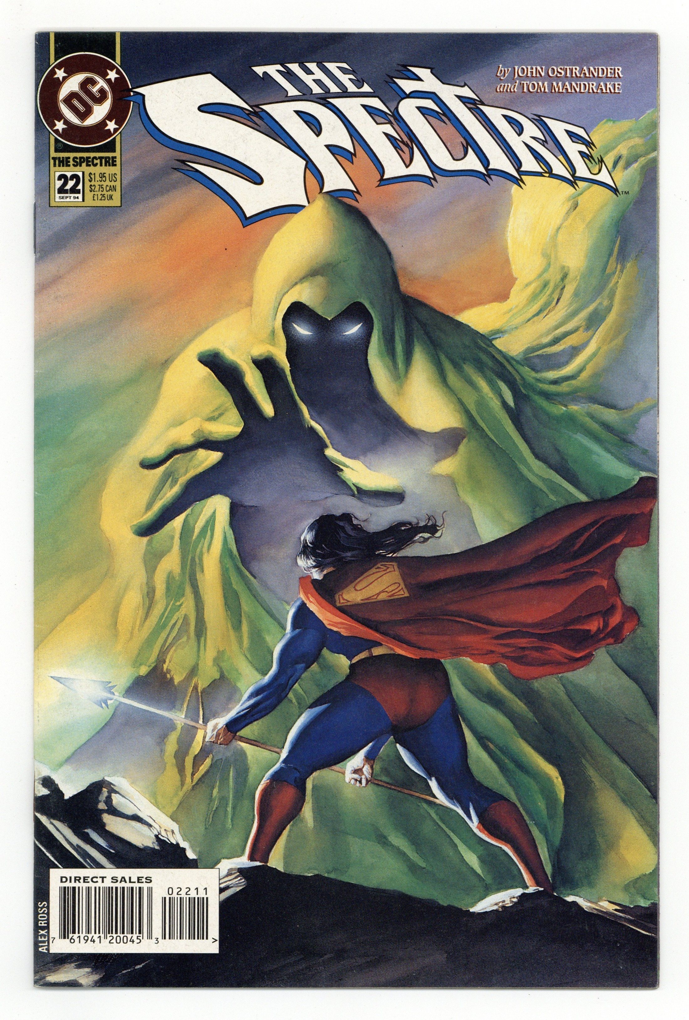 $21.00Superman guest-stars as the 'Spear of Destiny' saga reaches its climax. While the Spectre battles the water elemental Naiad, the Man of Steel arrives to challenge his rampage. Superman has the Spear of Destiny - the only thing that can stop the Spectre - and he's under Presidential Order to get him under control...or destroy him! Written by John Ostrander, with art by Tom Mandrake. Painted cover by Alex Ross. New Format. Cover price $1.95.