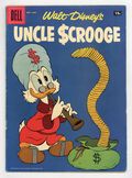Tags: Disney Ducks & MicePublished Nov 1957 by Dell/Gold Key/Whitman.$26.0015¢ Price Variant. Cover by Carl Barks. Stories and art by Carl Barks and Tony Strobl. Comics legend Carl Barks creates his masterpiece, featuring the adventures of Donald Duck's Uncle Scrooge, the richest duck in the world. During a trip around the world, Scrooge stumbles on the Mines of King Solomon. But his nephews' Junior Woodchuck animal calls draw unwelcome attention. Gyro Gearloose is hired to build a house that's as soft as pillows. Scrooge, like George Washington, hurls a dollar across the Potomac River, but then he races in a boat across the river to catch the dollar on the other side. History Tossed; Uncle Scrooge: The Mines of King Solomon; Gyro Gearloose: Gyro Builds a Better House; Birthday Busy-ness. 32 pages, Full Color. Cover price $0.15.