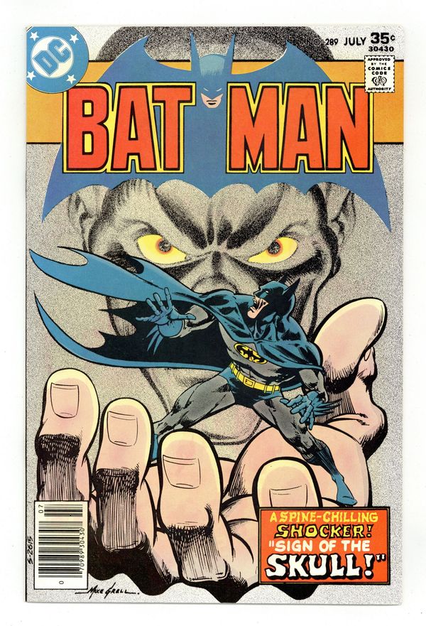 Tags: Batman$12.00Cover art by Mike Grell. Hostess snack cakes ad with Green Lantern. "Sign of the Skull," script by David Vern (as David V. Reed), pencils by Mike Grell, inks by Vince Colletta; "Skull" Dugger suffers from anhedonia, a psychological condition that robs him of the ability to experience joy, so he builds a machine that will allow him to feel it--by robbing joy and life from others at their moment of greatest pleasure; Batman succumbs to the machine. Remember the Five-Cent Phone Call? article by publisher Jenette Kahn. Bob Haney profile by Mike Gold. 36 Pages, Full Color. Cover price $0.35.