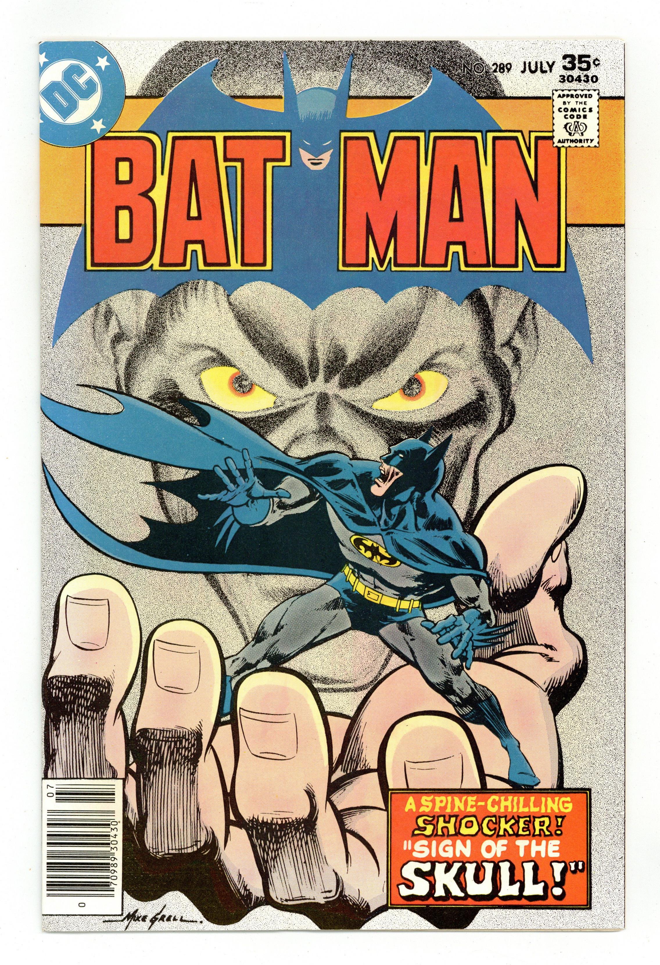 Tags: Batman$14.00Cover art by Mike Grell. Hostess snack cakes ad with Green Lantern. "Sign of the Skull," script by David Vern (as David V. Reed), pencils by Mike Grell, inks by Vince Colletta; "Skull" Dugger suffers from anhedonia, a psychological condition that robs him of the ability to experience joy, so he builds a machine that will allow him to feel it--by robbing joy and life from others at their moment of greatest pleasure; Batman succumbs to the machine. Remember the Five-Cent Phone Call? article by publisher Jenette Kahn. Bob Haney profile by Mike Gold. 36 Pages, Full Color. Cover price $0.35.