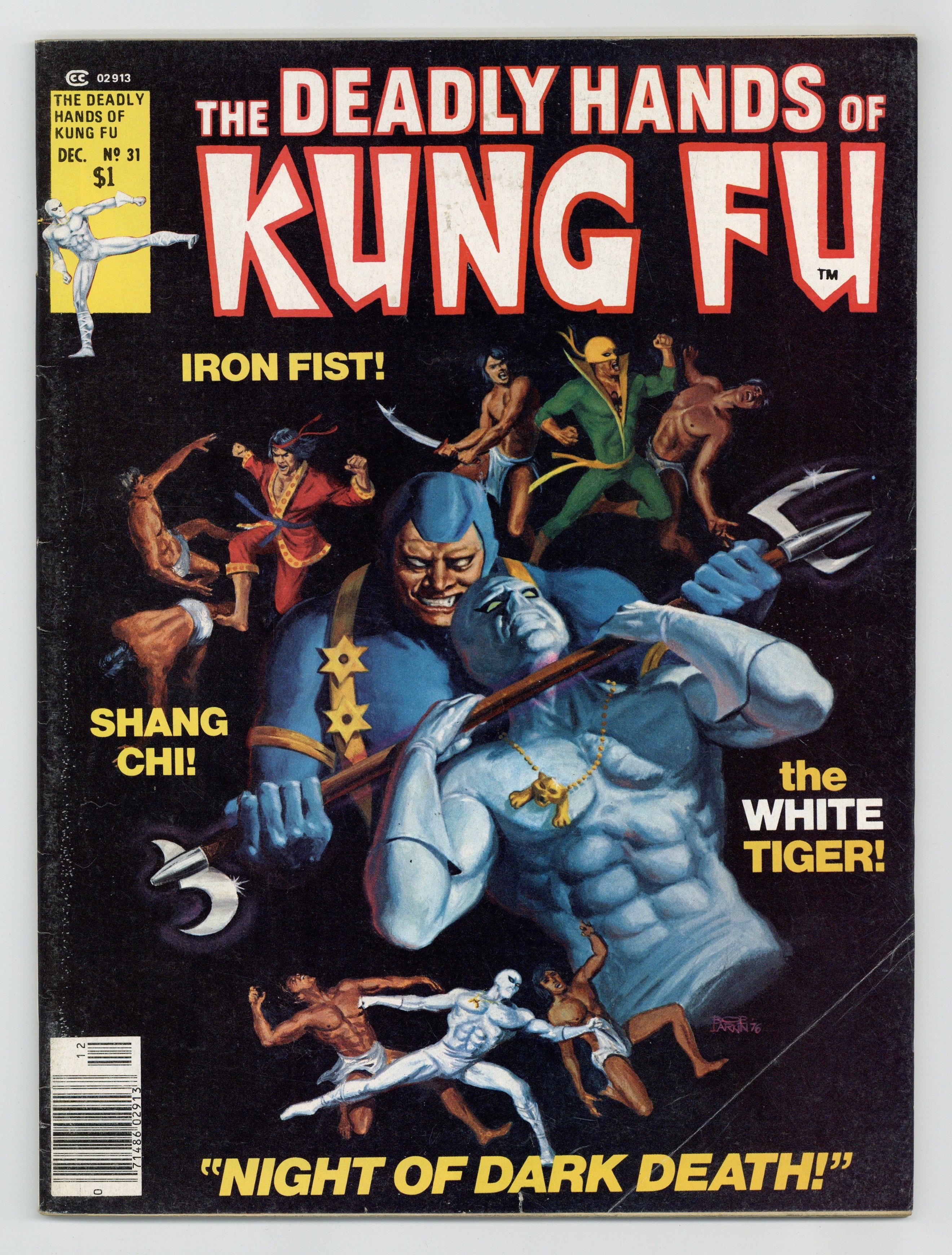 Tags: Martial Arts$21.00Stan Lee Presents: The Deadly Hands of Kung Fu. Cover by Bob Larkin. Includes: "Enter the Letters!" A letters page with readers' thoughts on previous issues. The Sons of the Tiger and White Tiger star in "Dark Waters of Death!" Guest-starring Shang Chi, the Master of Kung Fu, Iron Fist, and Jack of Hearts. Story by Bill Mantlo. Art by Joe Staton and Sonny Trinidad. The White Tiger battles along side Shang Chi, Iron Fist, and Jack of Hearts against an army of kung fu killers. They don't call this magazine the Deadly Hands of Kung Fu for nothing. Fighting Review!' A column by David Kraft. "The State of Martial Arts Today!" A comprehensive look at martial arts instruction across the country by Steve Clement. Black and white. Cover price $1.00.