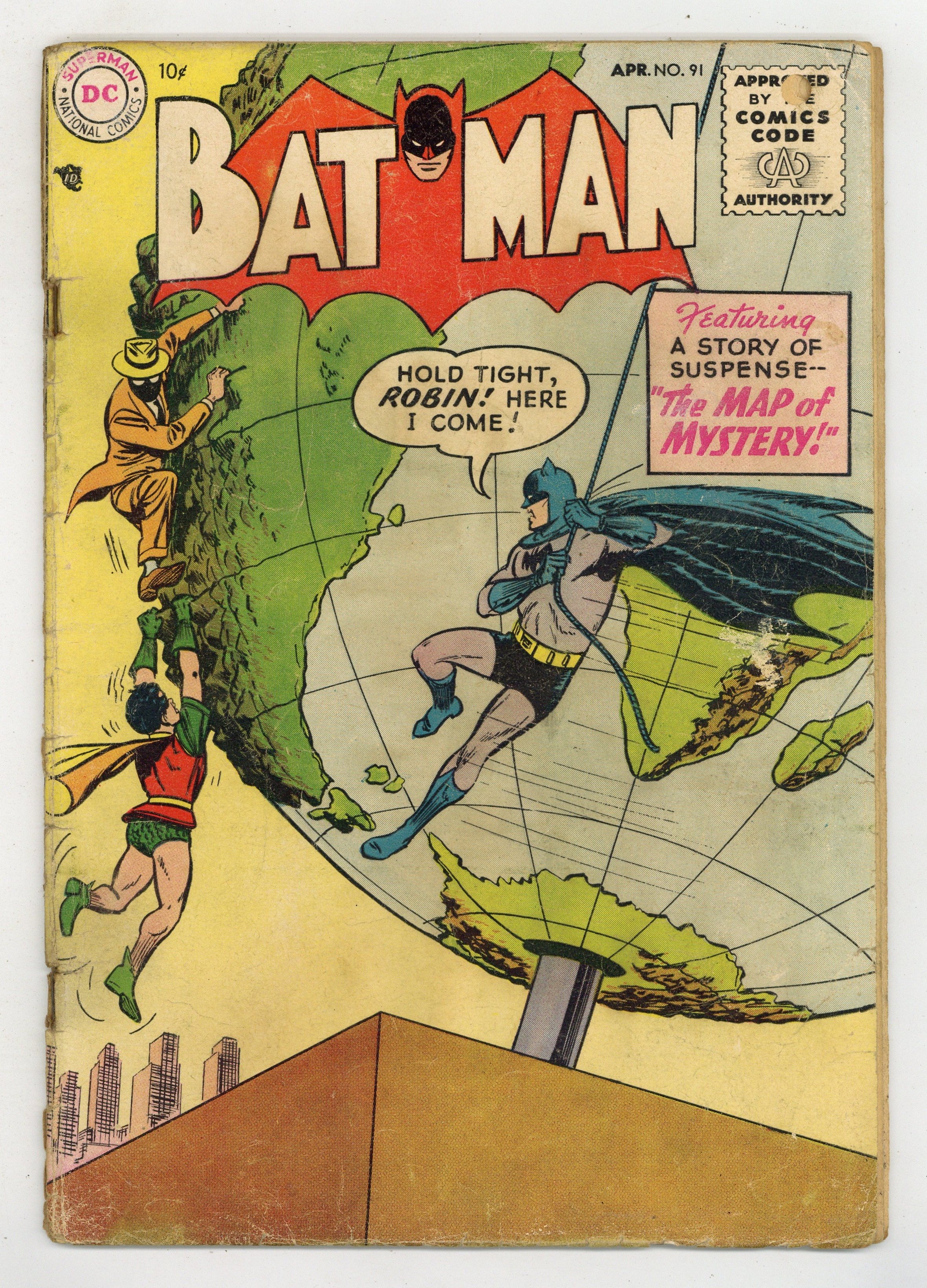 Cover by Win Mortimer. Don't Be Afraid to Speak Up! public service announcement with Peter Porkchops, script by Jack Schiff, art by Rube Grossman. "The Living Bat-Plane!", script by Edmond Hamilton, pencils by Dick Sprang, inks by Charles Paris; With help from Dr. Philip Winters, Batman and Robin test the new remote controls on the Batplane and Batmobile; Unfortunately, bad guys take the controls of the Bat-vehicles and turn them against the Dynamic Duo. Batman Whirly-word Game activity page by Martin Naydel. "Batman's Publicity Agent!", pencils by Sheldon Moldoff, inks by Charles Paris; A publicity agent named Mike Whalen starts a city wide publicity stunt in honor of Batman; The Caped Crusader finds it flattering, but the constant exposure of Batman-themed stunts interfere with his crime-fighting career. One-page Playful Pop and the Kiddies story. "The Strangest Lawmen on Earth" text story. One-page Casey the Cop story by Henry Boltinoff. "The Map of Mystery!", script by Edmond Hamilton, pencils by Dick Sprang (as Bob Kane), inks by Charles Paris; An explorer from the famed "Explorer's Club" sets out to find an ancient lost city of the Incas, but refuses to share his secret with other members and eventually disappears; Batman is called in by the other Club members to track down their fellow member and find this lost city, not realizing one of the member wishes to loot the city. 36 Pages, Full Color. Cover price $0.10.