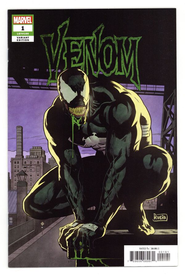 Limited 1 for 25 Retailer Incentive Variant Cover. Written by Donny Cates. Art by Ryan Stegman. Cover by Paolo Rivera. A NEW SERIES BY DONNY CATES & RYAN STEGMAN! In the wake of S.H.I.E.L.D.'s collapse, an ancient and primordial evil has been awakened beneath the streets of New York, and with it, something equally evil has awakened in that most Wicked of Webslingers - VENOM! Still a Lethal Protector of the innocents in New York, this never-before-seen threat could force Venom to relinquish everything it holds dear - including Eddie Brock! Join two of the hottest creators in comics today, Donny Cates and Ryan Stegman, for a VENOM adventure a thousand years in the making! 40 pages, full color. Rated T+