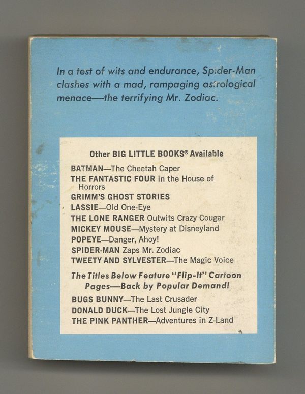 Tags: Spider-Man$7.00Spider-Man Zaps Mr. Zodiac (1976 BLB) #5779 (1st print) with 49¢ cover price. Softcover, B&W Cover price $0.49.